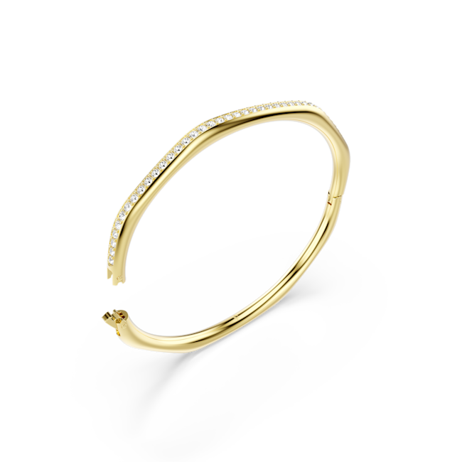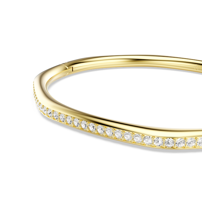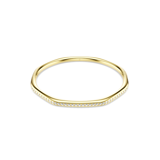 The Swarovski Dextera Bangle in an octagon shape with round cut crystals is a luxurious and sophisticated accessory, exemplifying Swarovski’s renowned craftsmanship. As one of the brand’s most popular styles, this bangle stands out with its slender, geometric silhouette, featuring an elegantly faceted octagonal design. The white gold-tone plating adds a modern brilliance, perfectly complementing a striking row of precision-cut crystals meticulously arranged in a refined prong setting. The Dextera bangle effortlessly combines minimalist lines with glamorous sparkle, making it a versatile addition to any jewelry collection. Whether worn solo for a statement of understated elegance or stacked with other bangles for a more dramatic look, it elevates any ensemble with its signature Swarovski glow.