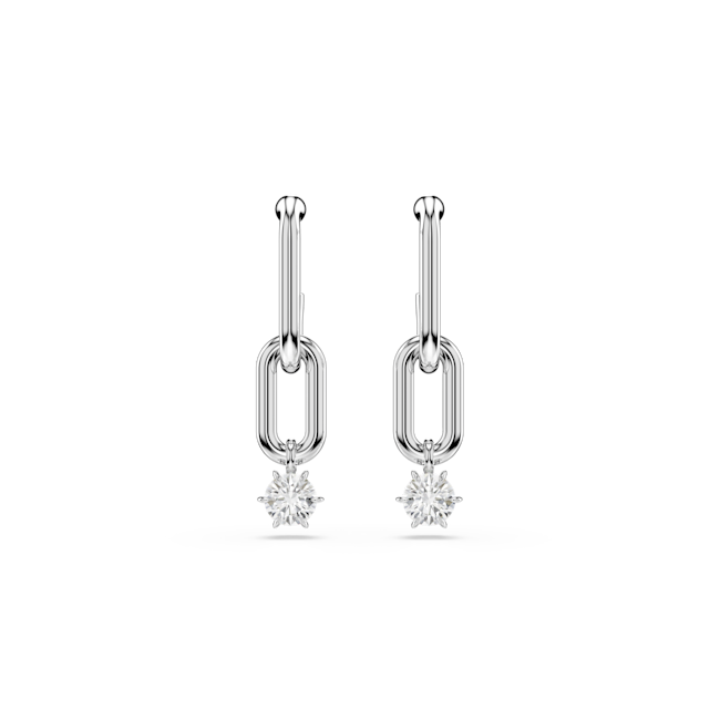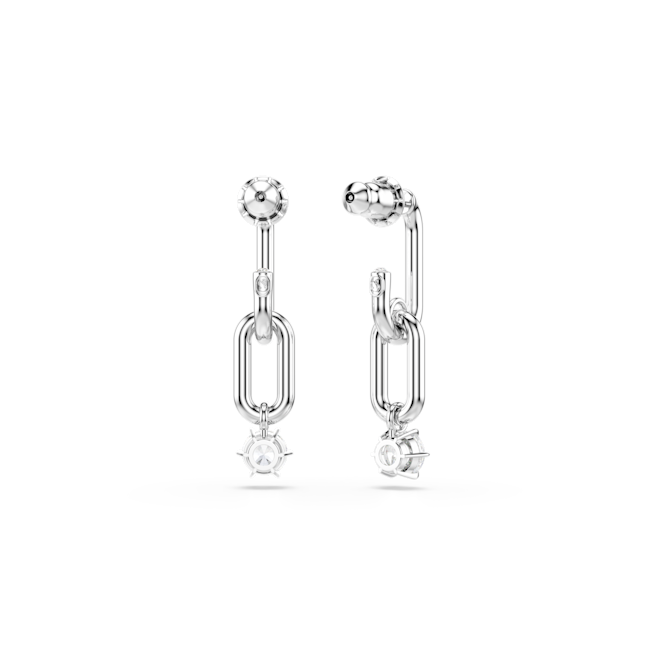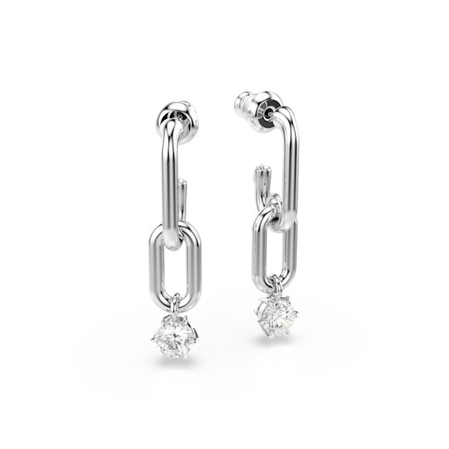 The Swarovski Constella Drop Earrings in Round Cut White Rhodium-Plated design are a striking blend of elegance and modern style. Each playful earring features two interconnecting links crafted in radiant rhodium plating, giving them a sleek and contemporary metallic finish. Suspended beneath is a prong-set Swarovski Zirconia, which delicately catches and reflects light for a captivating effect. This thoughtful design creates a unique movement, bringing a burst of Swarovski’s signature brilliance to every turn of the head. Perfect for anyone seeking a refined yet unexpected accessory, these earrings transition effortlessly from casual daytime outfits to sophisticated evening ensembles, making them a versatile and dazzling addition to any jewelry collection.