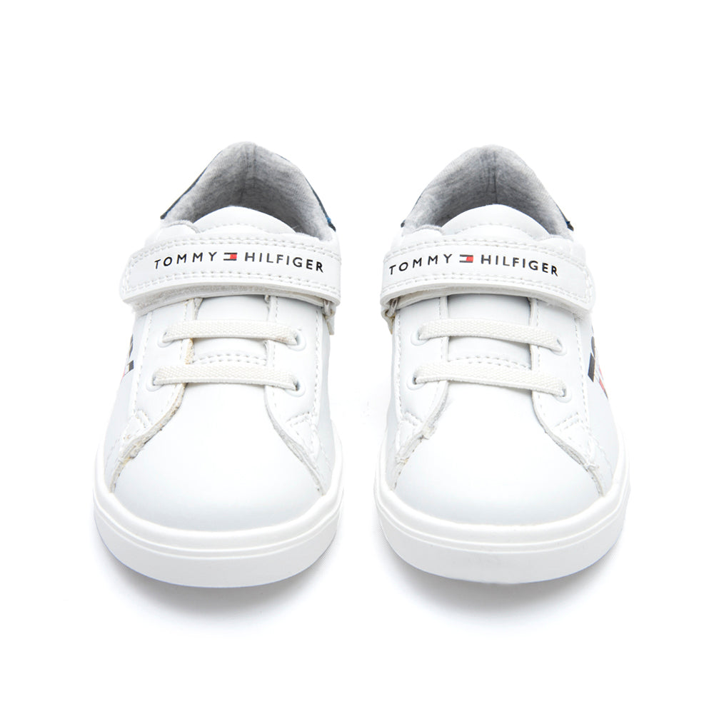 These Tommy Hilfiger White/Blue Shoes feature a modern-yet-classic style for any wardrobe. The round toe shoes have multiple closure systems that make them easy and comfortable to wear, including both velcro and lace-up. This combination makes them perfect for transitioning from the school day to sports. The sides of the shoe feature the recognizable Tommy Hilfiger logo to add subtle style. Comfortable materials are used throughout the shoe, including a cushioned inner sole and non-slip rubber sole. These shoes are the perfect mix of style and comfort, making them a great choice for any occasion. SPECIFICATIONS