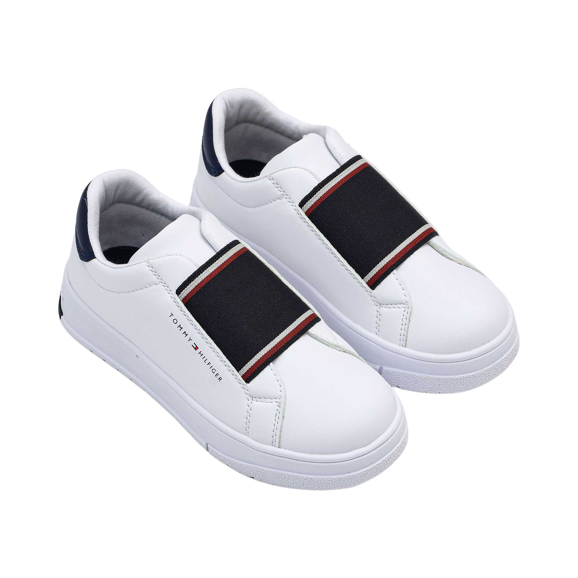 Tommy Hilfiger Kids Boy's White & Blue Logo Sneaker