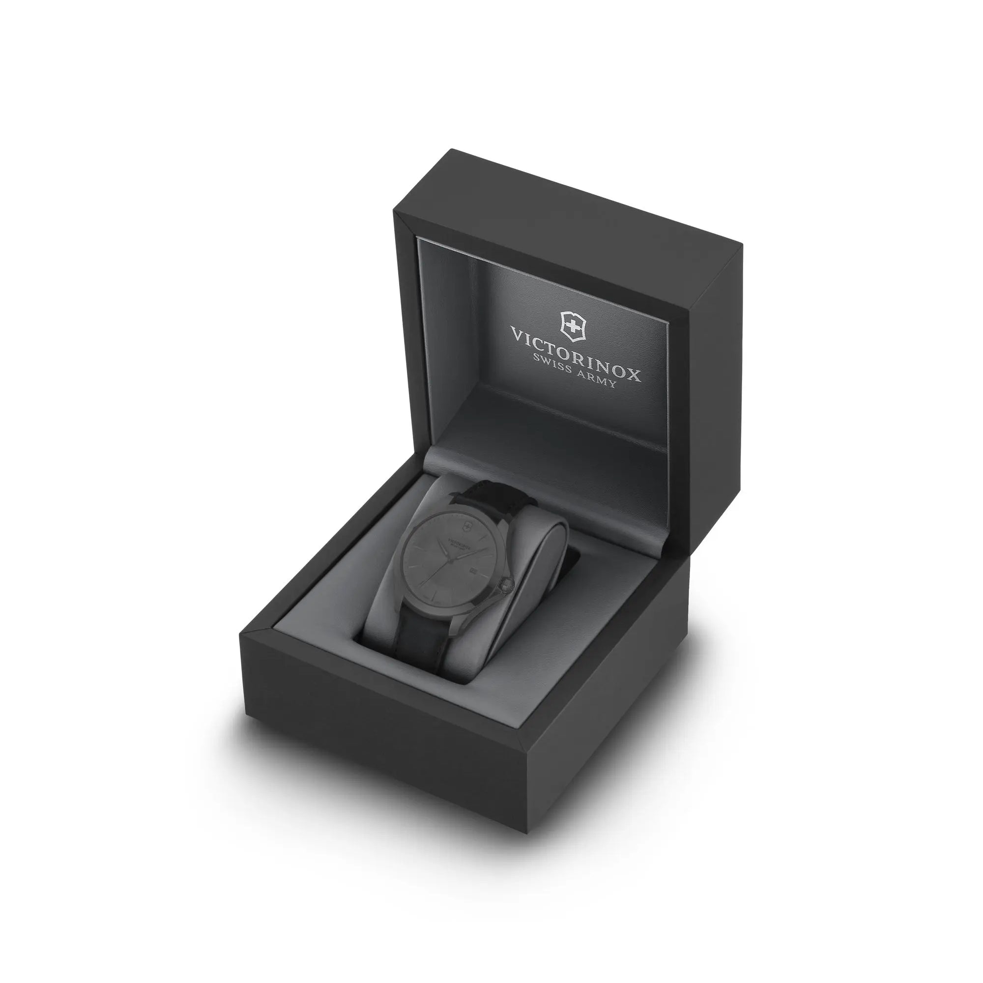 The Essence of Time Introducing the Alliance Watch from Victorinox, your new trusted companion. This ordinary, yet extraordinary, timepiece has been put through a battery of 100 homologation tests to ensure it can endure the rigours of everyday use. This is a sophisticated timepiece that will keep time with the rhythms of your life, thanks to the combination of Swiss-made precision detailing and a leather band. SPECIFICATIONS :