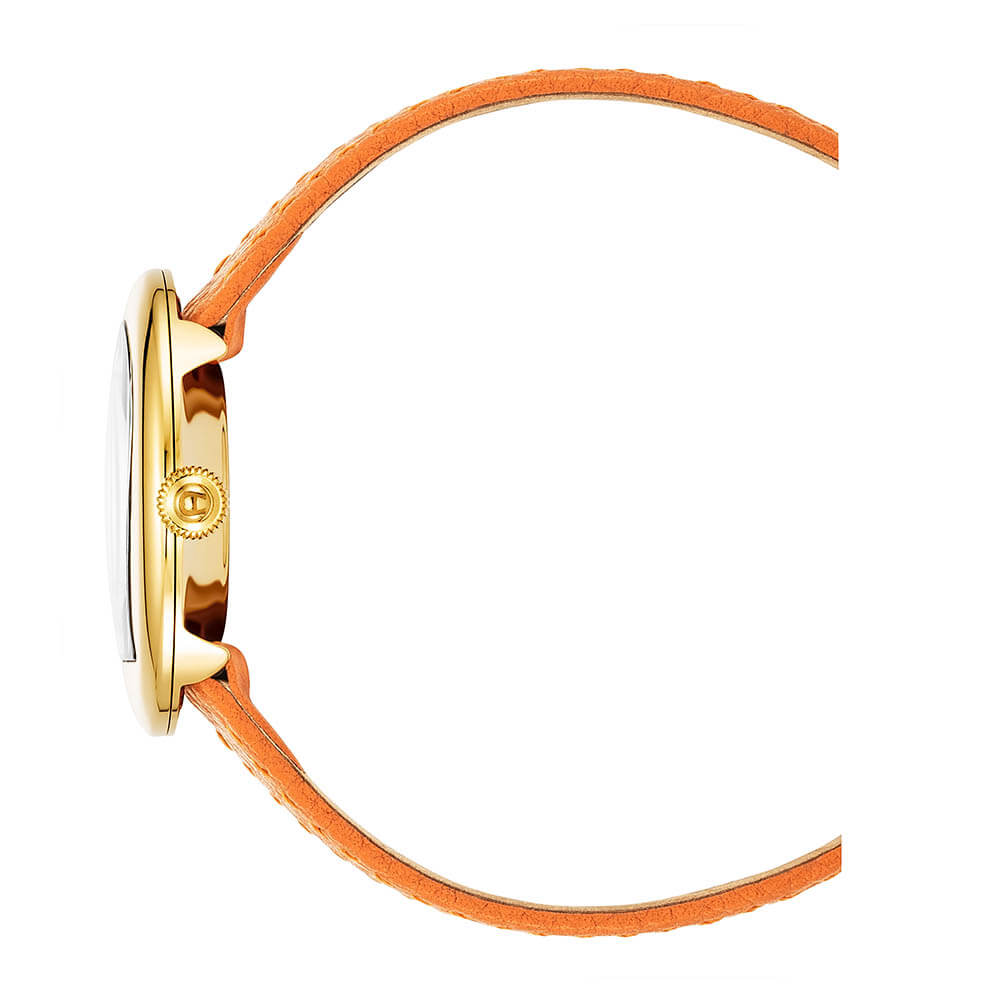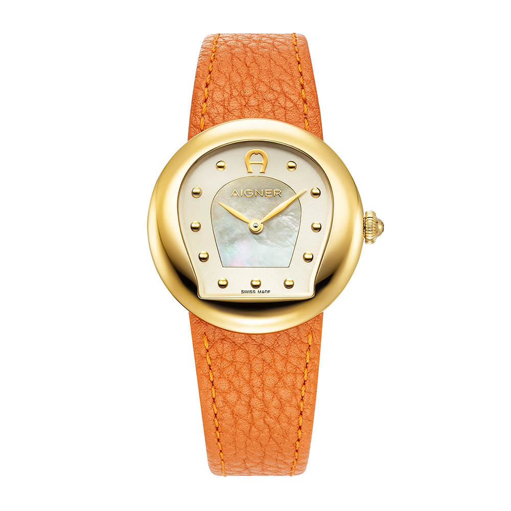 Aigner Biella Ladies MOP Dial Cold Case Orange Leather Strap Watch