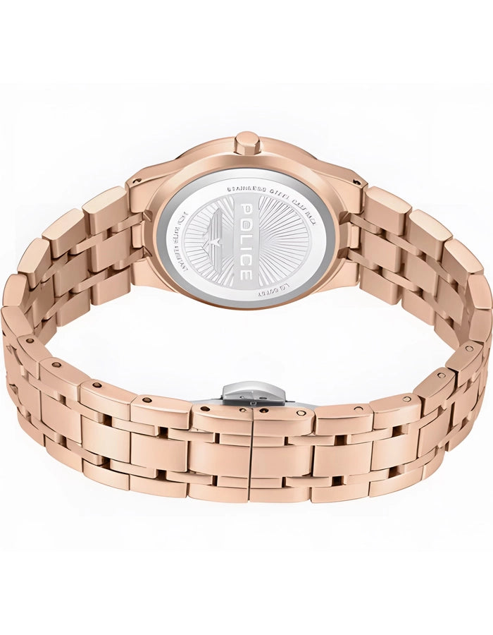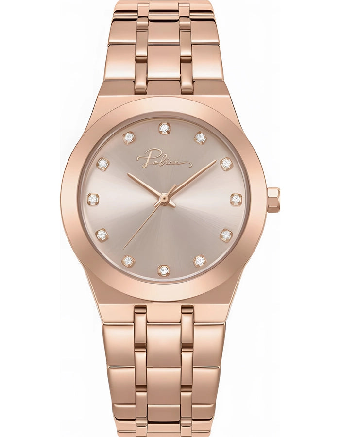 The polished rose gold-tone hands complement the dial perfectly, and the integrated metal bracelet ensures both comfort and a flawless aesthetic. The Police Allure PEWLG0075701 is an ideal accessory for the woman who appreciates refined luxury and a radiant, monochromatic design that stands out with understated brilliance.
