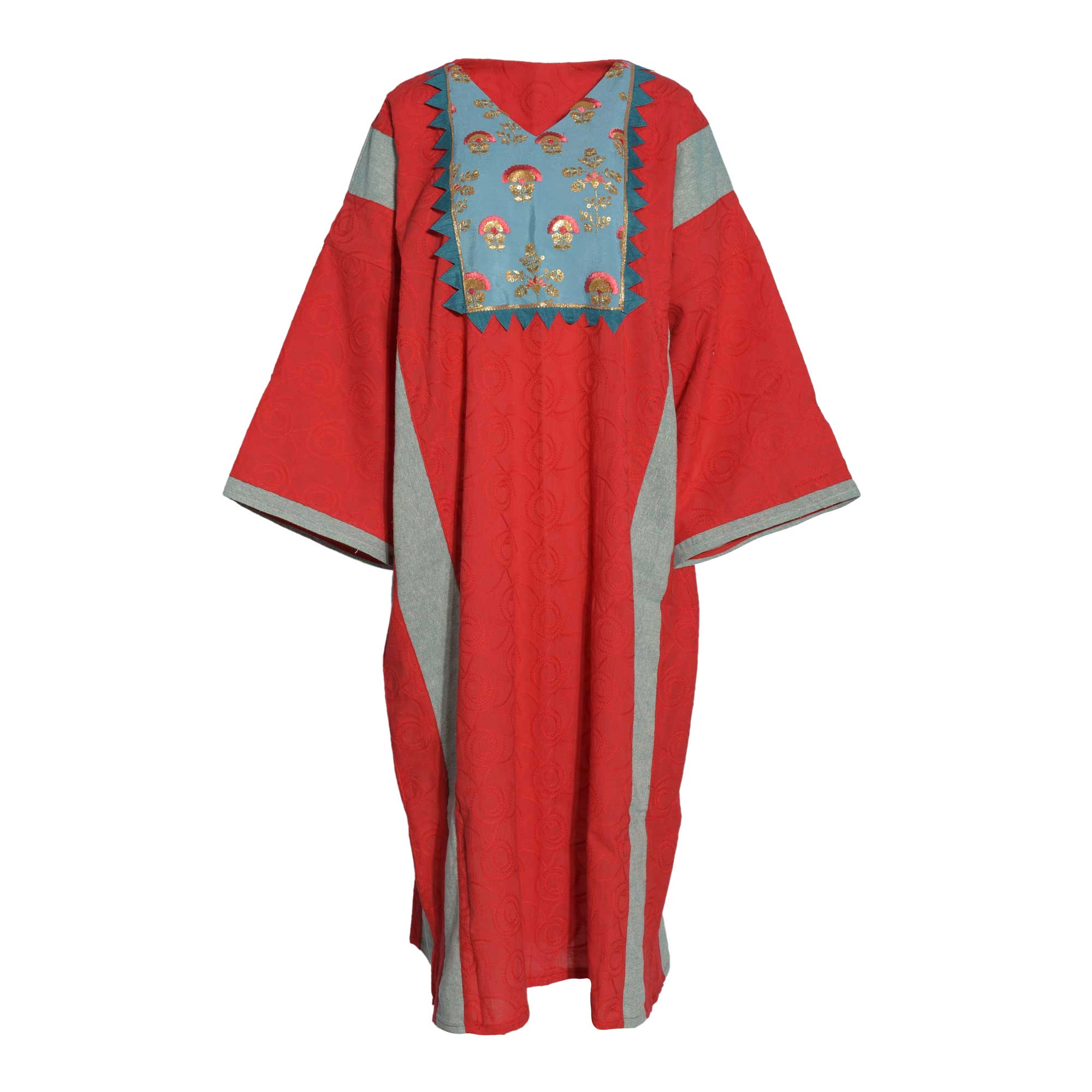 The Fahm Women's Red & Blue Dress is a stunning piece of clothing that exudes elegance and sophistication. Made from premium quality fabric, this dress is soft and comfortable. It comes in a free size, making it suitable for women of all body types. The beautiful embroidery to front adds a touch of glamour and style to the overall design. The dress features a V neck that is both chic and flattering. The long sleeves provide coverage and add a touch of modesty to the dress.  The premium quality fabric is soft against the skin, and the free size design ensures that it fits comfortably on any body type. Whether you are attending a formal event or a casual outing with friends, the Fahm Women's Red & Blue Dress is the perfect choice.