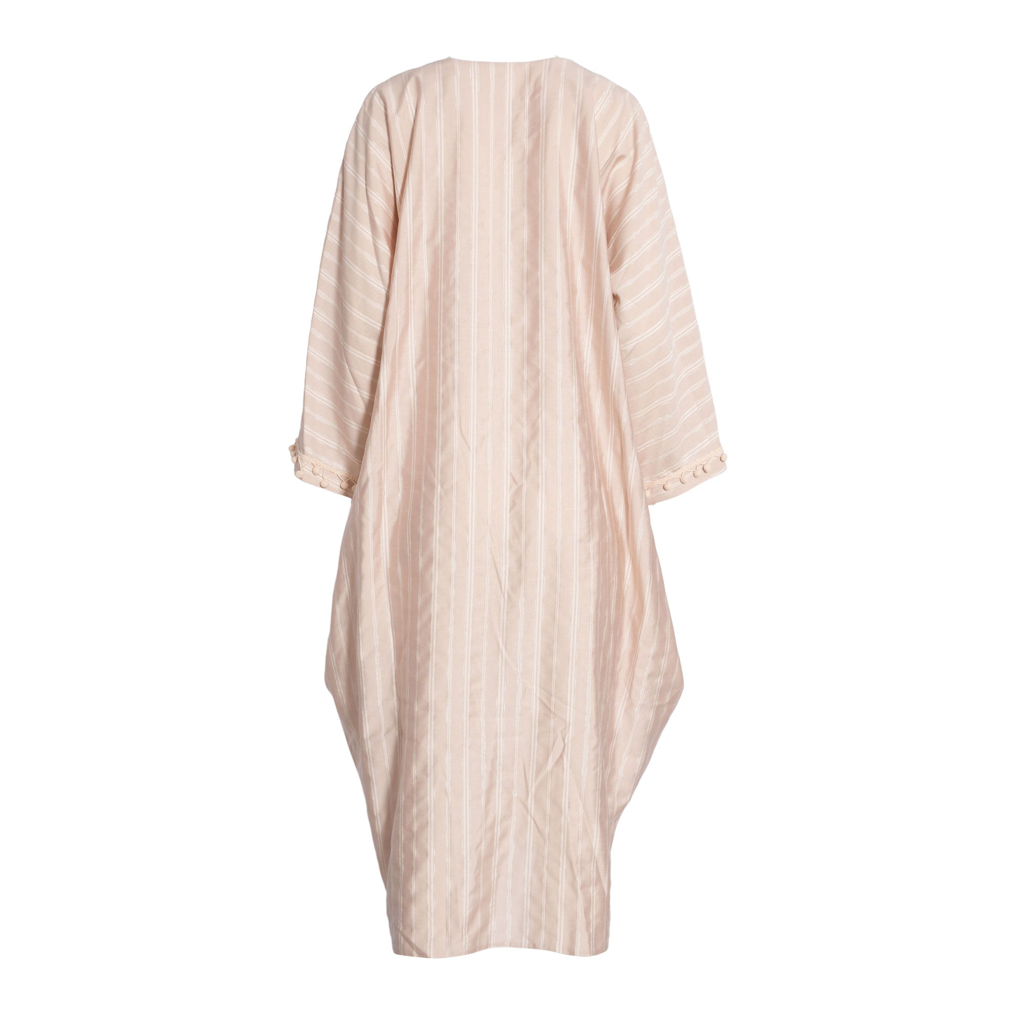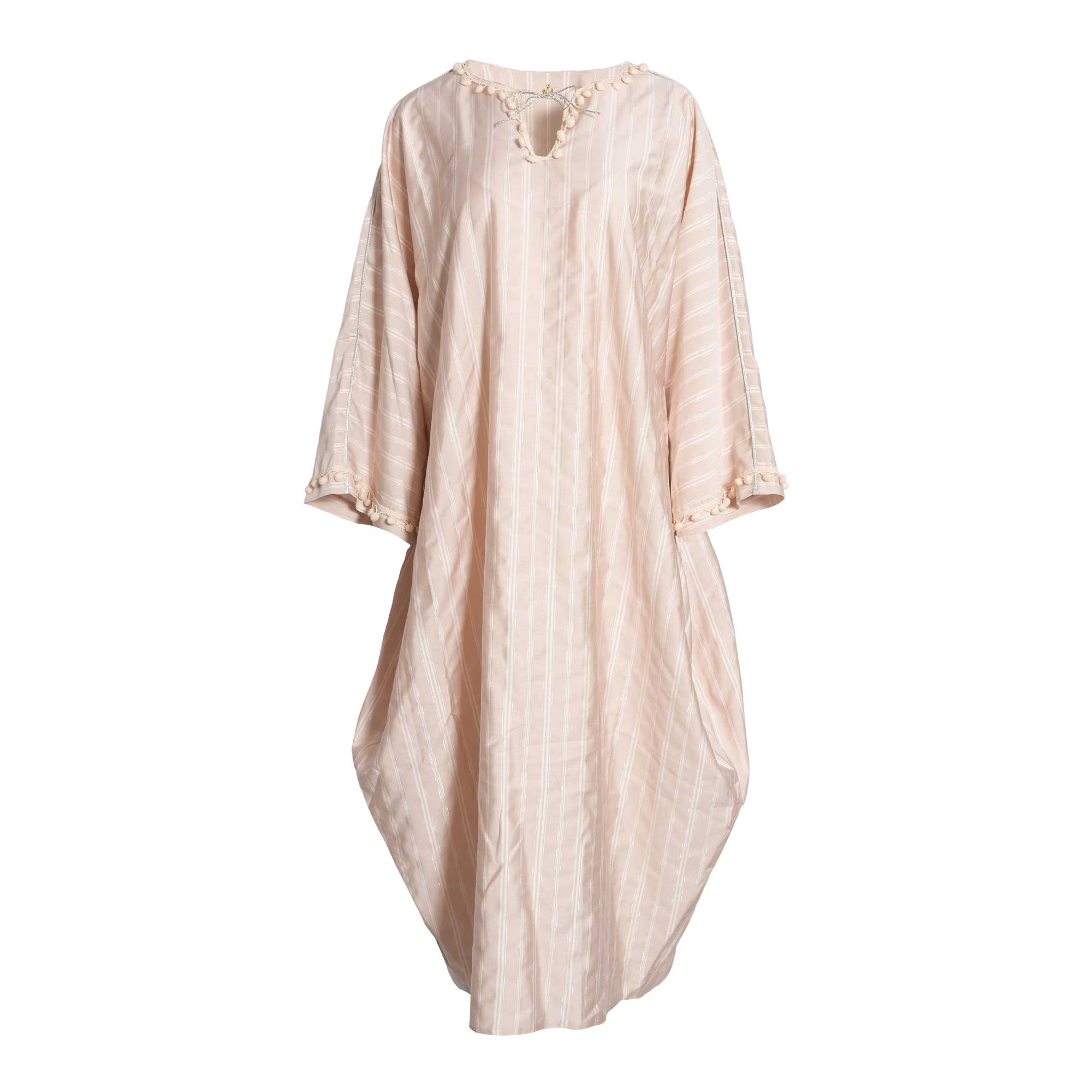 This Fahm Women's Light Pink Dress is a beautiful and unique piece of clothing that is perfect for any occasion. The dress is made from premium quality fabric and features a round neck with slit, long loose sleeves, and a stripes pattern fabric. The dress is free size, so one size fits all. The dress is also adorned with beautiful matching lace on the neck and cuffs, giving it a classy look. This dress is perfect for any casual or formal event and is sure to make you stand out in the crowd. The dress is comfortable and lightweight, making it perfect for any season. This dress is a great addition to your wardrobe and is sure to become a favorite. SPECIFICATIONS: