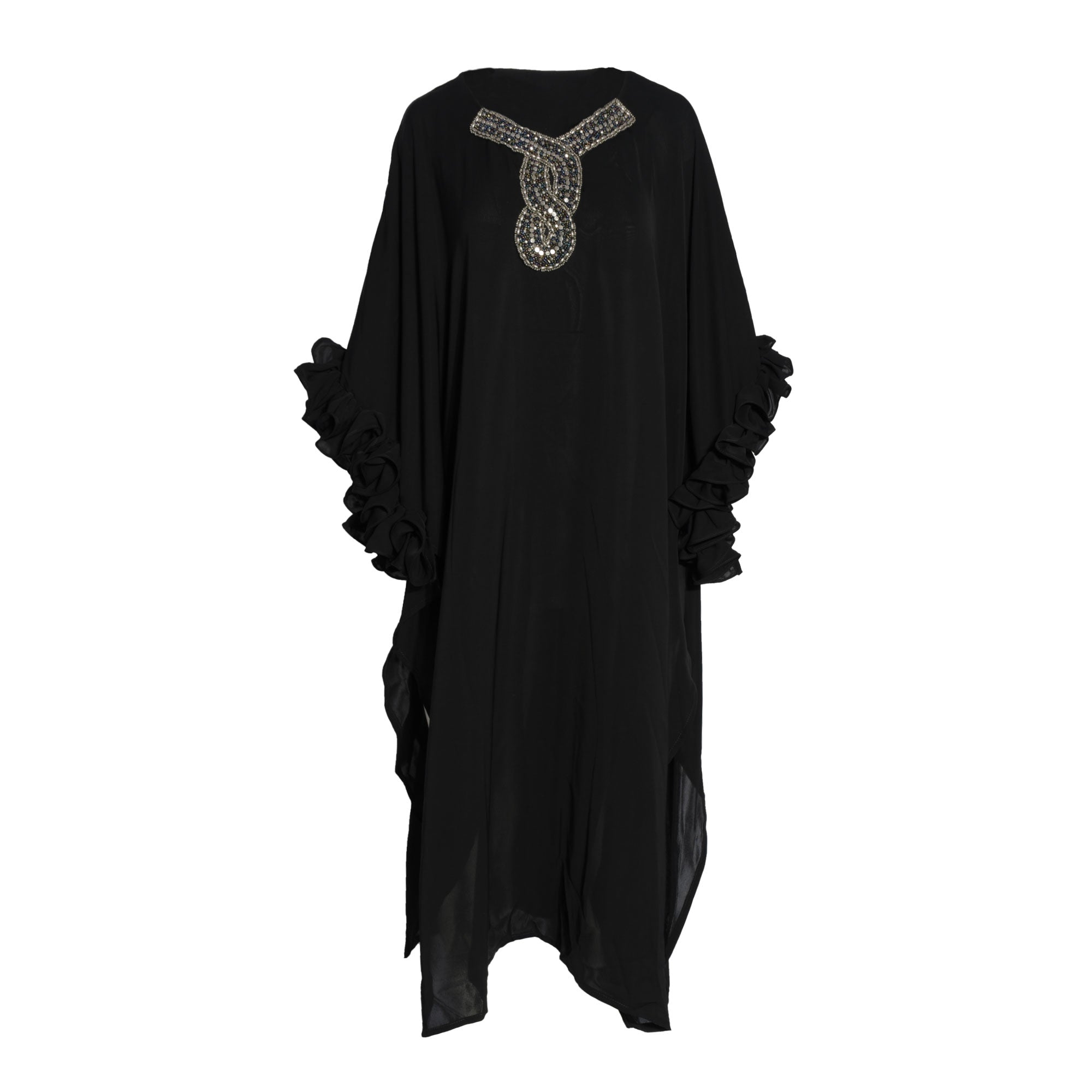 The Fahm Women's Black Dress is a stunning piece of clothing that exudes elegance and sophistication. Made from premium quality fabric, this dress is soft and comfortable. It comes in a free size, making it suitable for women of all body types. The beautiful embroidery to front adds a touch of glamour and style to the overall design. The dress features a round neck that is both chic and flattering. The long and rufflle sleeves provide coverage and add a touch of modesty to the dress.  The premium quality fabric is soft against the skin, and the free size design ensures that it fits comfortably on any body type. Whether you are attending a formal event or a casual outing with friends, the Fahm Women's Black  Dress is the perfect choice.