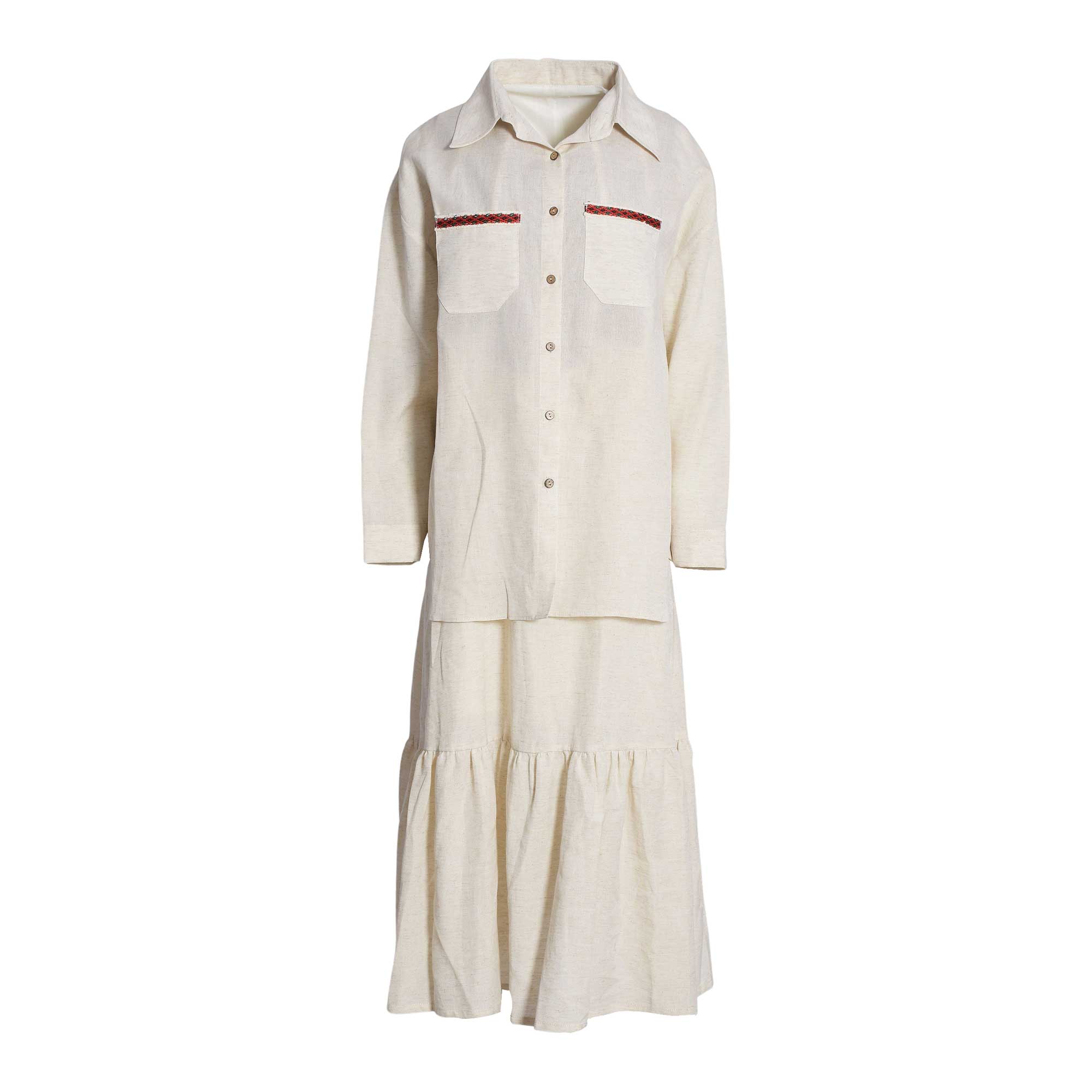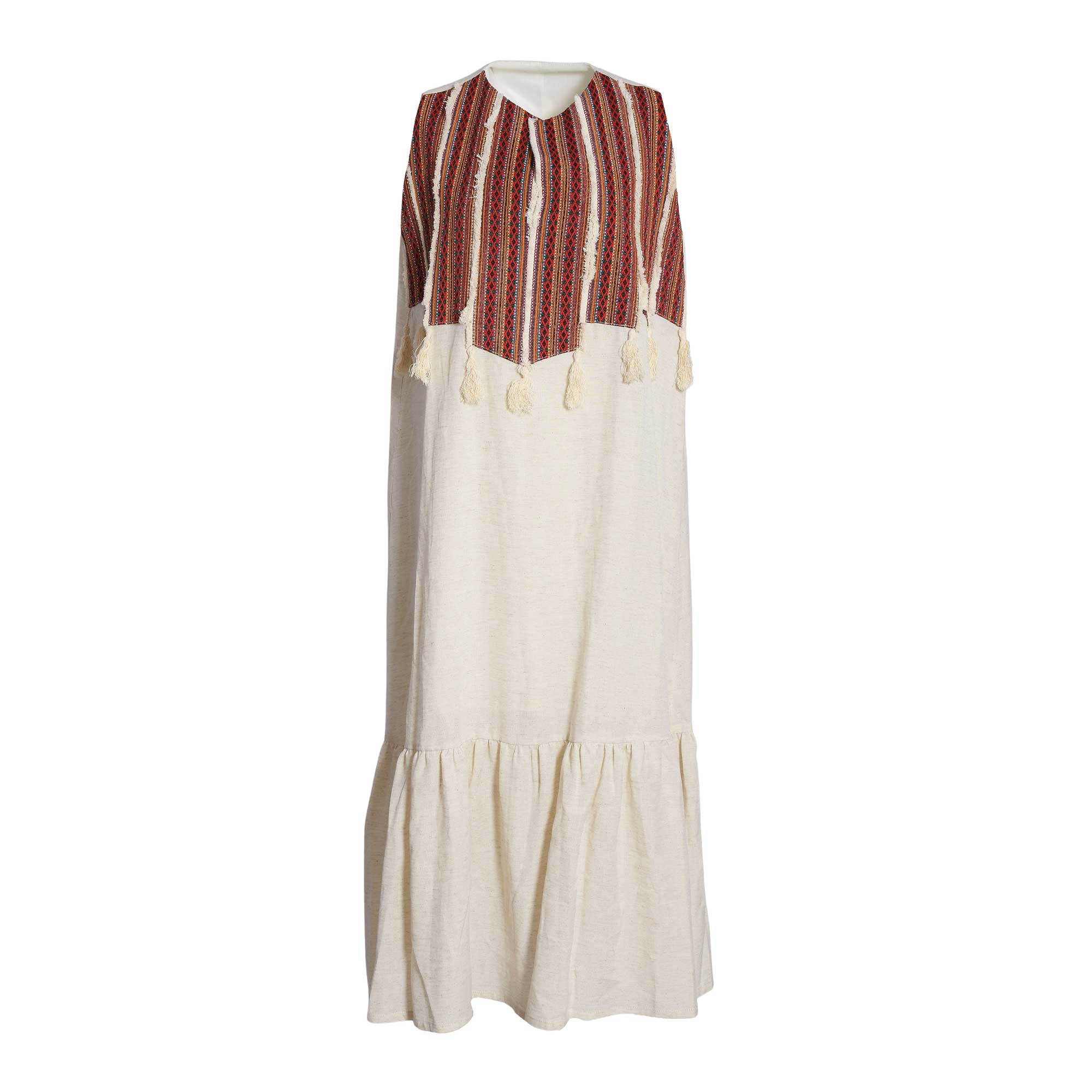 The Fahm Women's Beige & Printed Dress Set is perfect for any occasion! The set includes a long sleeveless dress with a front contrast patch and tassel detailing and a ruffle hemline, all made from a premium quality fabric. The outside shirt has a collar neck, long sleeves, front pockets, and a front button closure with a contrast fabric trim on the pockets. The set is free size, so it can fit most body shapes and sizes. This stylish dress set is sure to make you stand out in any crowd. The beige and printed color combination is perfect for any season, and the tassel detailing adds an extra touch of sophistication. The fabric is also of a high-quality, ensuring that you will stay comfortable all day long. Whether you're attending a formal event or just going out for the day, this set is sure to make a statement. SPECIFICATIONS: