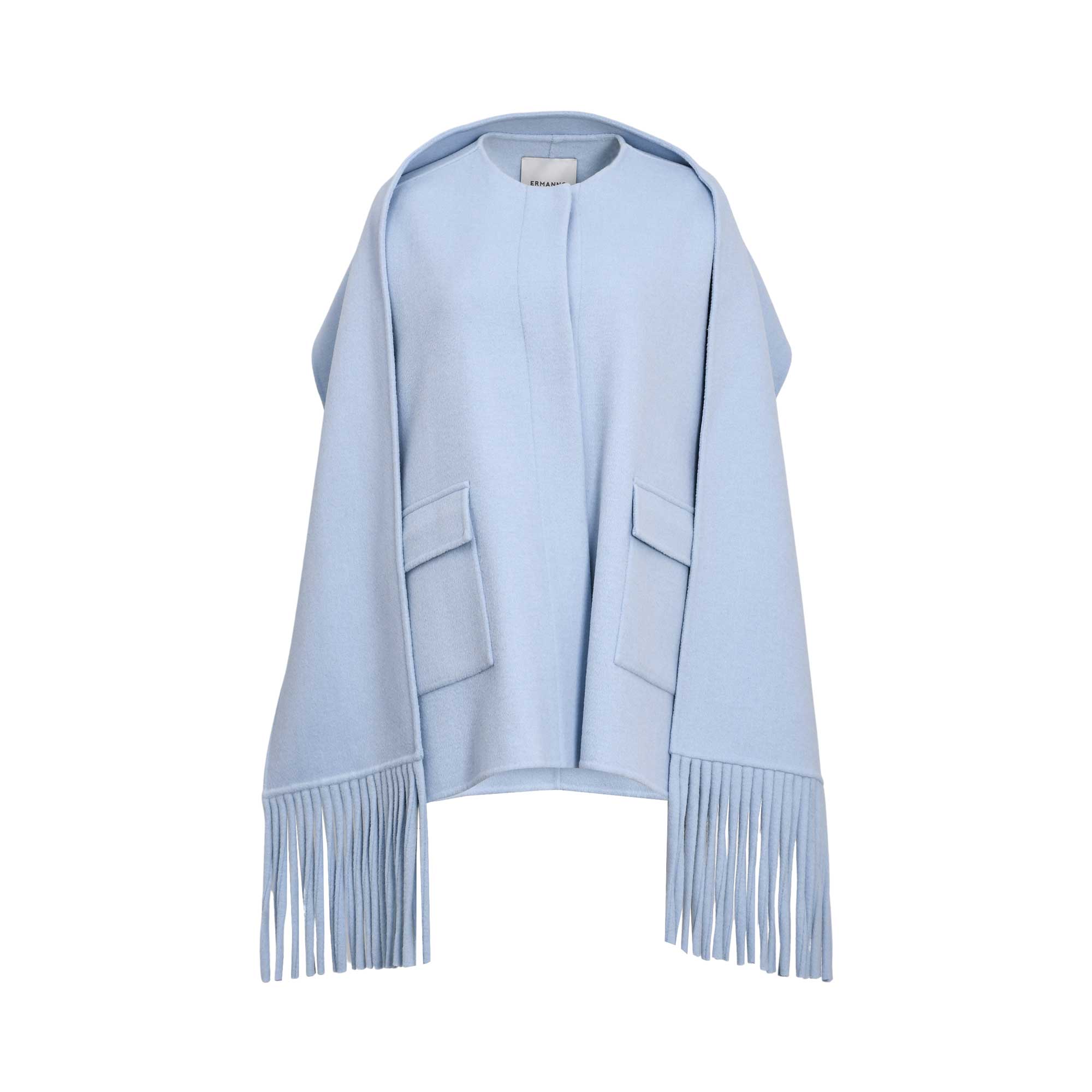 Ermanno Firenze Fringe Trim Cashmere-Blend Poncho/Cape in Light Blue