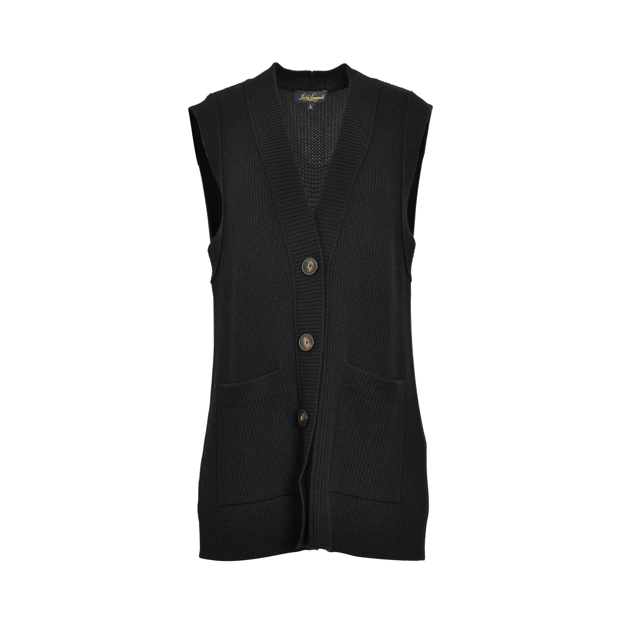 The Luisa Spagnoli Murena Women's Waistcoat is a sophisticated long sleeveless cardigan crafted from ribbed pure virgin wool, providing both warmth and elegance. This stylish piece features contrasting trim along the armholes and button placket, adding a subtle yet striking detail to the overall design. Its deep V-neckline enhances its chic silhouette, complemented by classic horn buttons that offer a timeless touch. Designed with a regular fit, the Murena waistcoat effortlessly combines comfort with refined style, making it a versatile addition to any wardrobe.