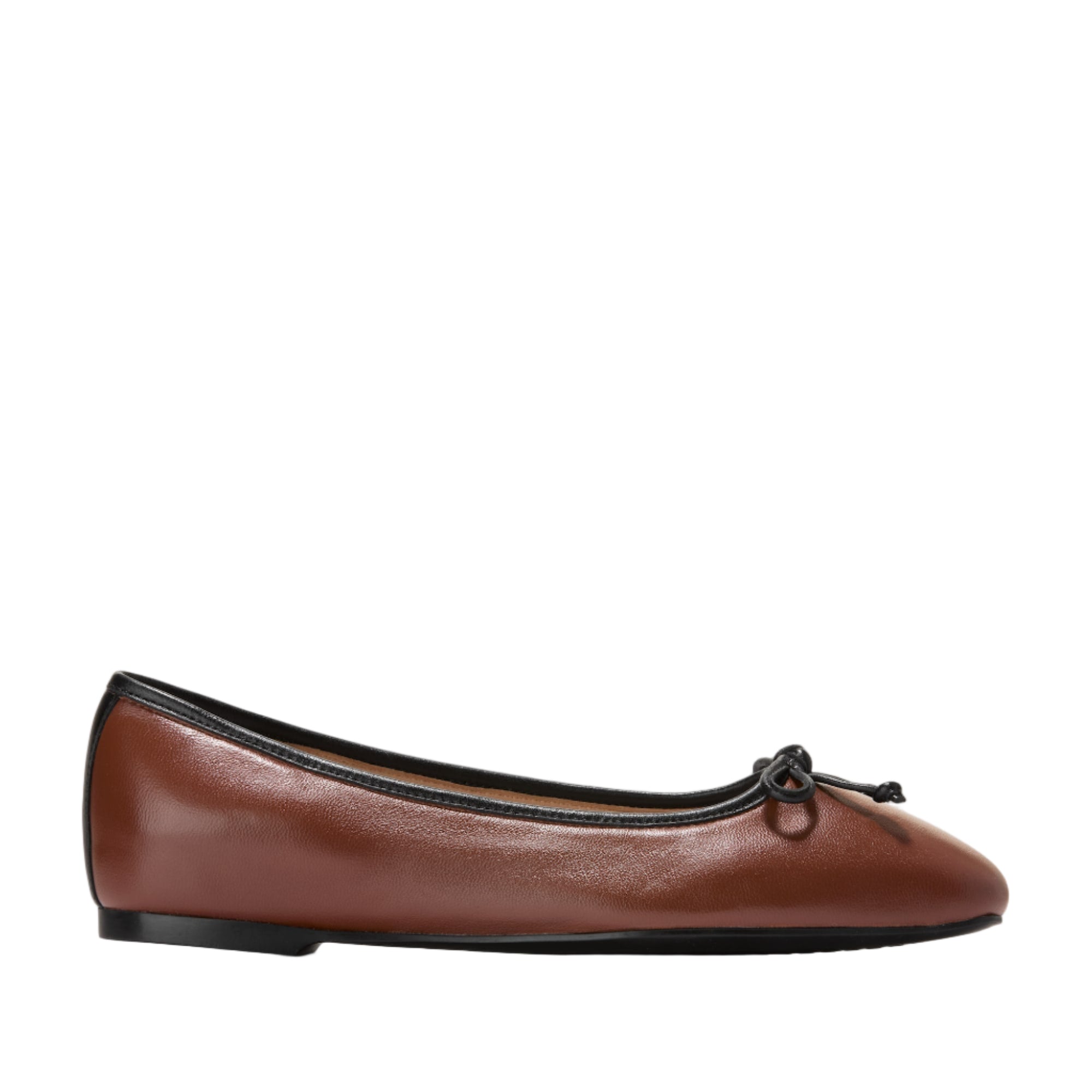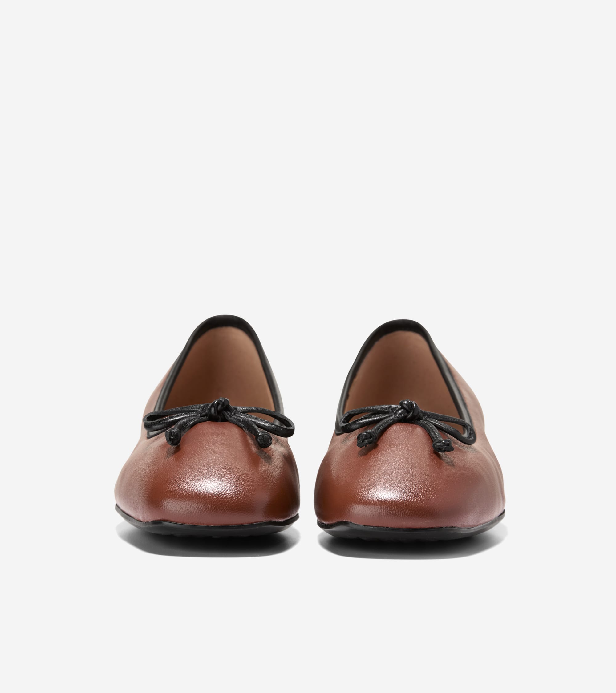 The Cole Haan Women's Nicolette Ballet Flats are a stylish and versatile choice, featuring a premium leather upper offered in both Dark Cuoio and Black for a sophisticated appearance. Designed for all-day comfort and support, these flats boast a hidden wedge for subtle added height without sacrificing stability. The cushioned memory foam footbed molds to the contours of your feet, ensuring a plush and comfortable feel with every step. Additionally, the durable TPU outsole provides excellent traction and resilience, making the Nicolette Ballet Flats suitable for both work and casual outings. With their sleek silhouette and thoughtful comfort features, these flats effortlessly blend fashion and practicality.