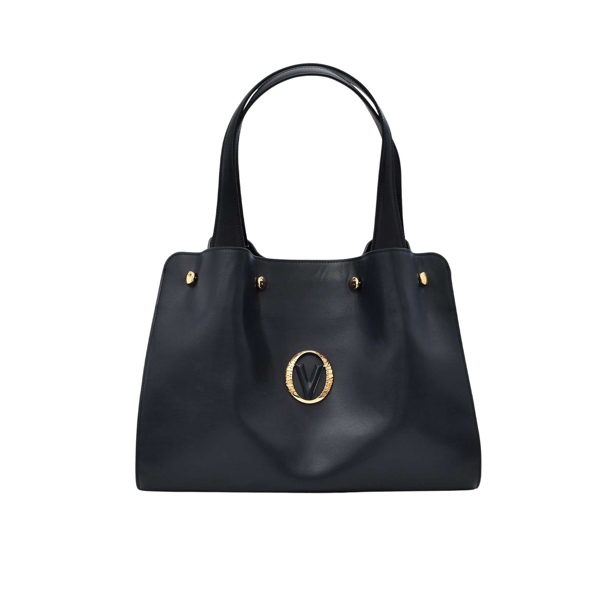 The Orlandi Valentino Women's Leather Hand Bag is a sophisticated and stylish accessory that effortlessly combines elegance with practicality. Crafted from high-quality leather, this handbag features a striking gold-tone logo plaque that adds a touch of luxury and brand recognition. Designed for versatility, it offers two sturdy top handles for hand-carrying, as well as an adjustable and detachable shoulder strap, allowing for comfortable wear as a crossbody or shoulder bag. Its sleek design and functional features make it an ideal choice for both everyday use and special occasions, complementing a variety of outfits with timeless charm.