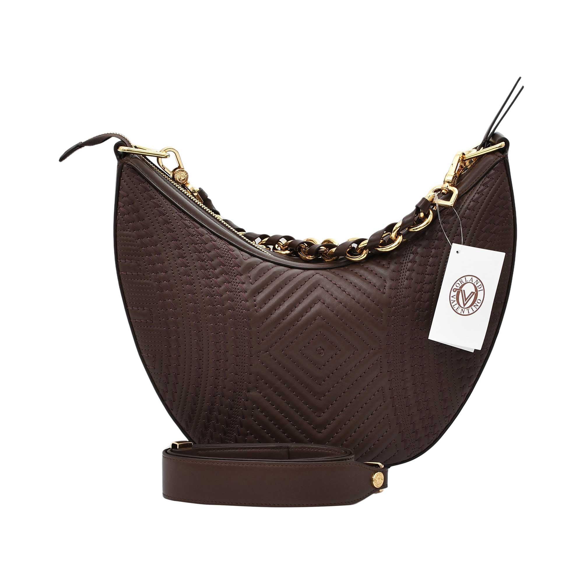 The Orlandi Valentino Women's Leather Shoulder Bag is a sophisticated accessory that perfectly combines style and functionality. Crafted from high-quality leather, this bag exudes durability and elegance. It features a decorative lock on the front, adding a touch of uniqueness and charm to its sleek design. Equipped with two sturdy top handles, the bag offers a comfortable hand-carry option, while a detachable strap provides versatility for wearing it over the shoulder or as a crossbody. The gold-tone logo subtly accentuates the bag’s luxurious appeal, making it an ideal choice for both casual outings and formal occasions.
