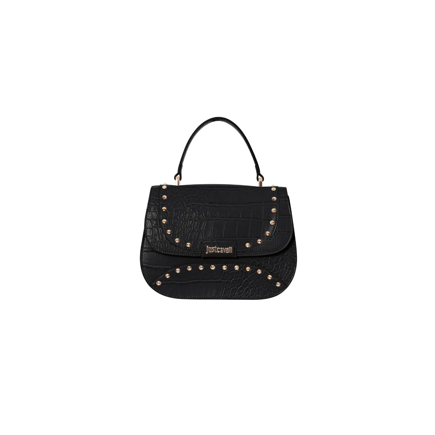 Branding: Features the "Just Cavalli" logo in gold hardware centered below the flap.