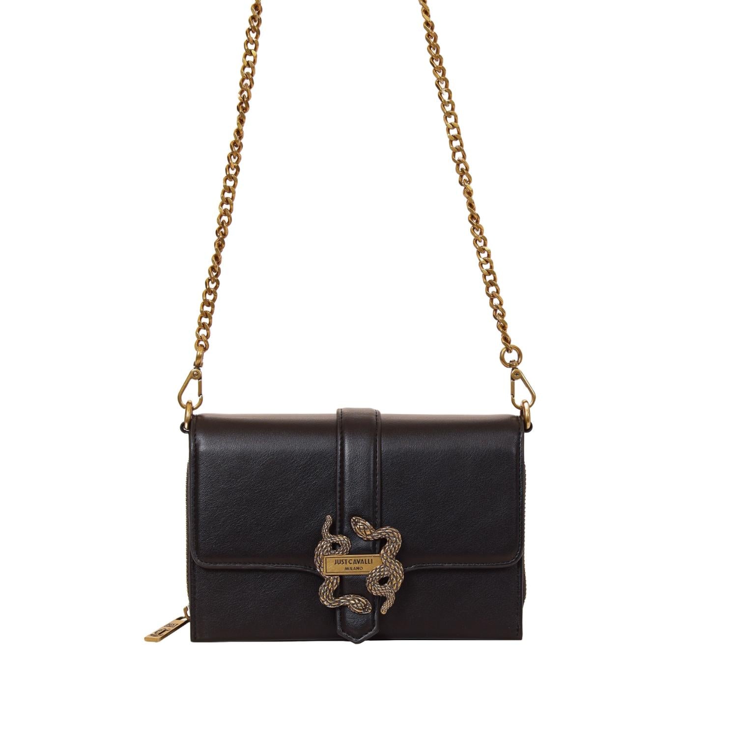 Just Cavalli Women's Rectangular Chain Shoulder Bag with Serpent Hardware