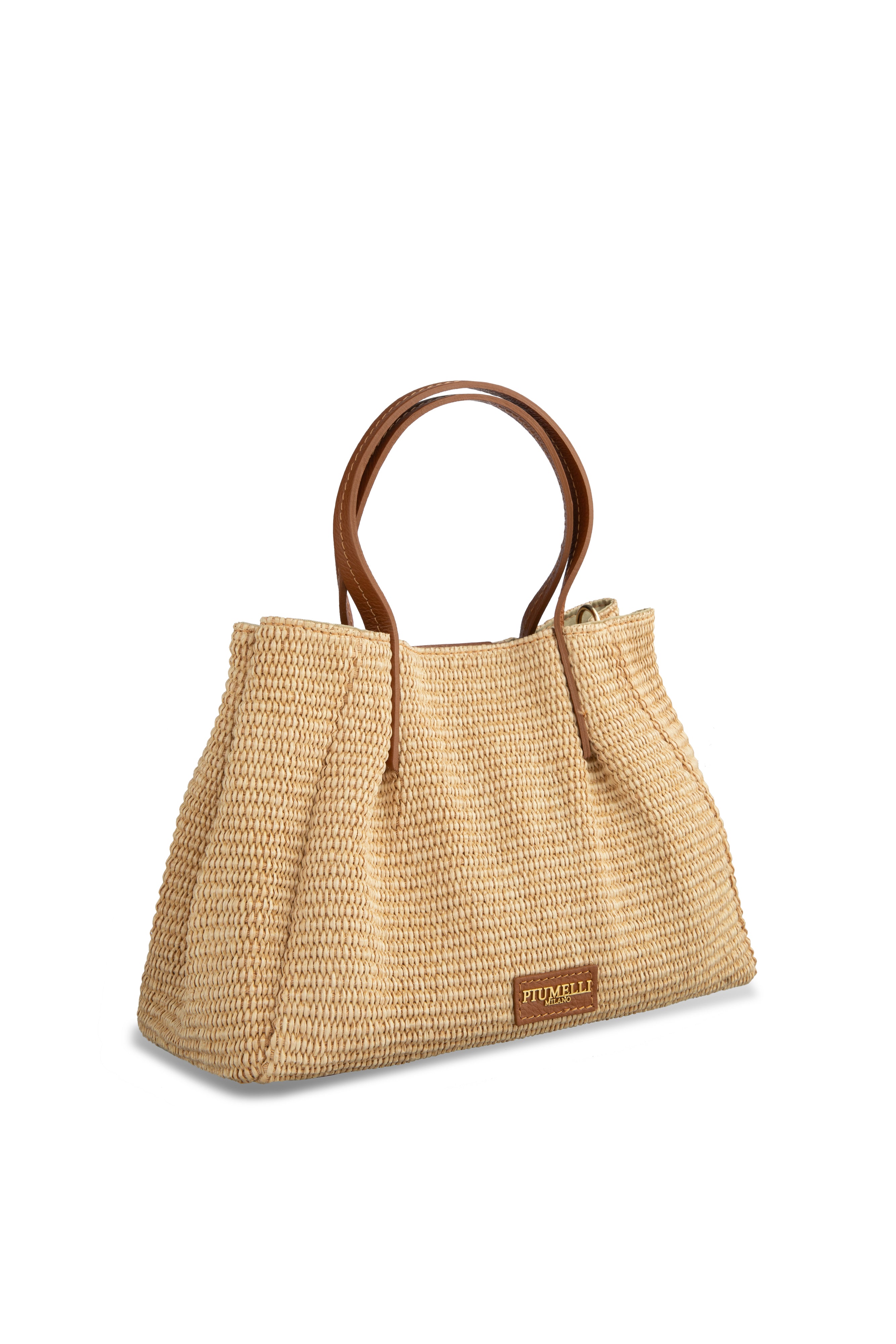 Piumelli Women's ALAIS Tobacco Straw and Ruga Leather Polyester Lining Elevate your accessory collection with this sophisticated Piumelli ALAIS handbag, masterfully crafted to blend natural textures with refined elegance.