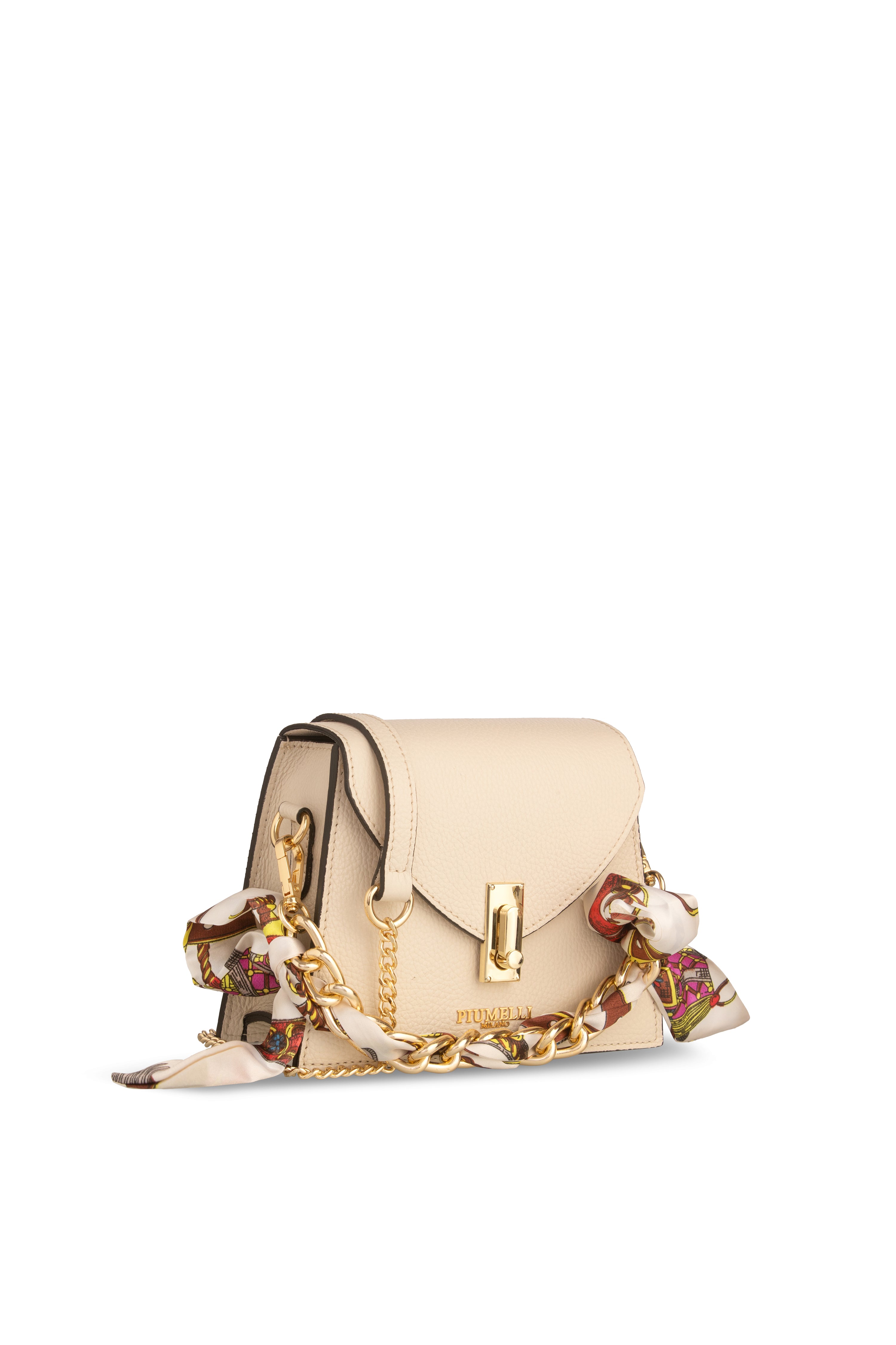 • Subtle gold "PIUMELLI" logo debossed on the front clasp plate