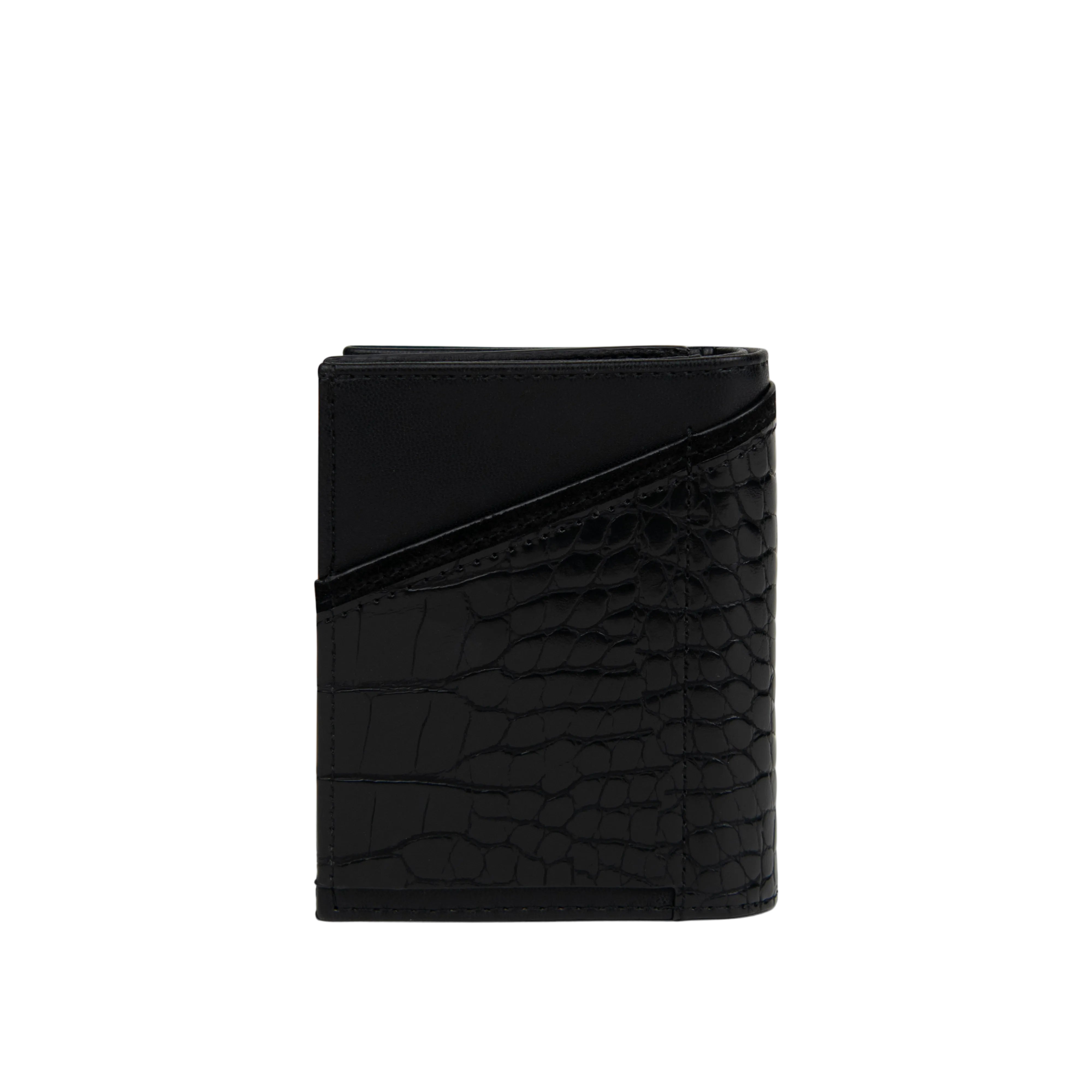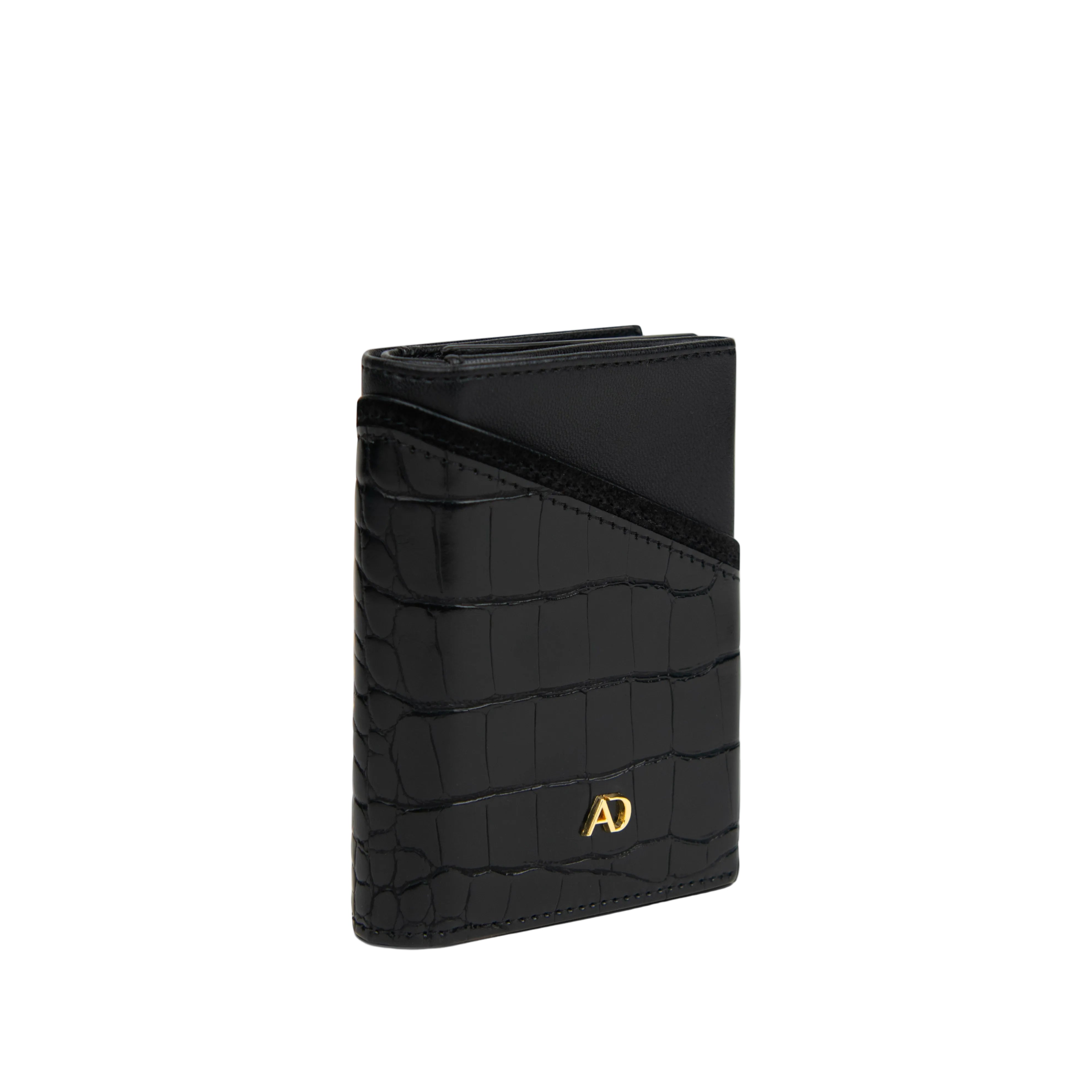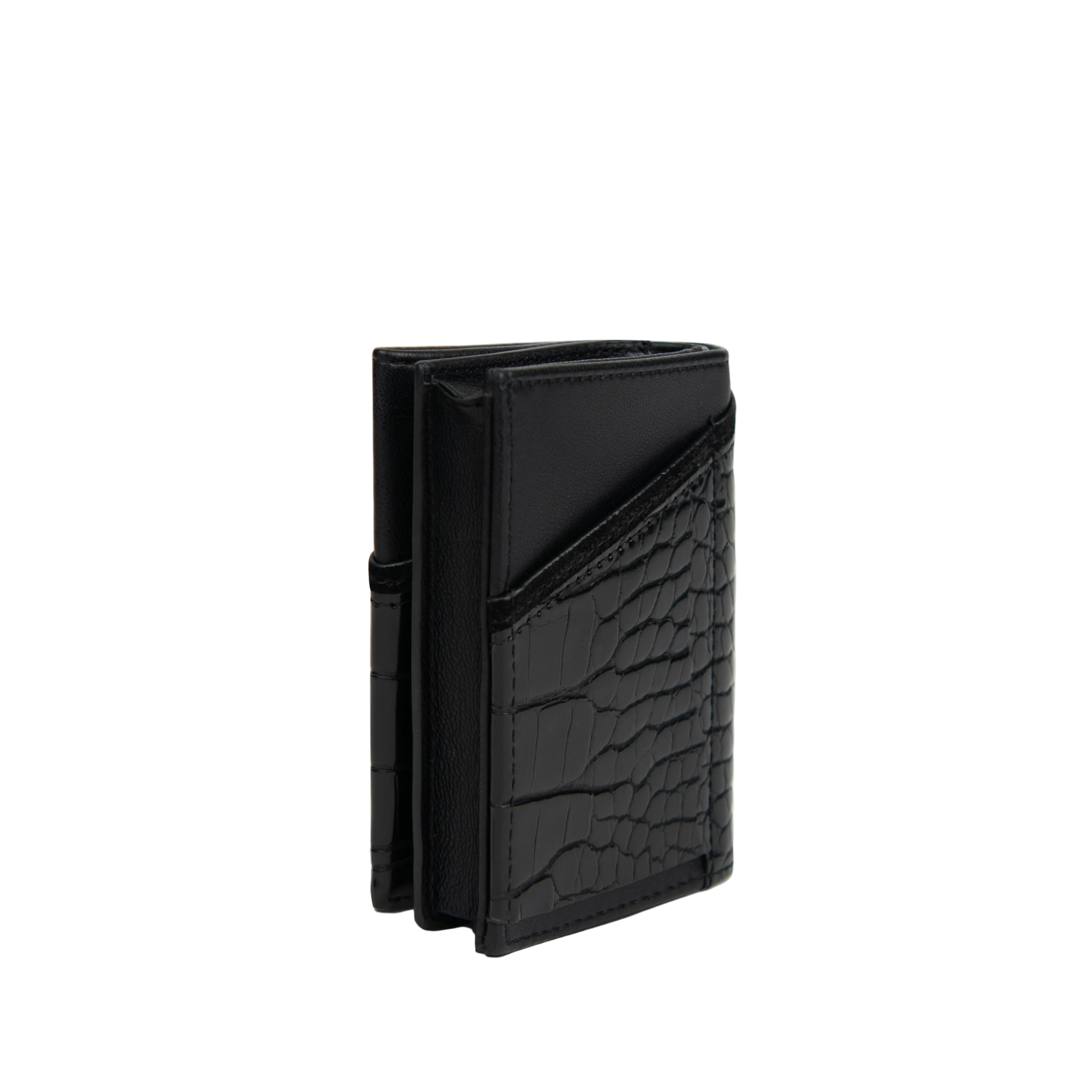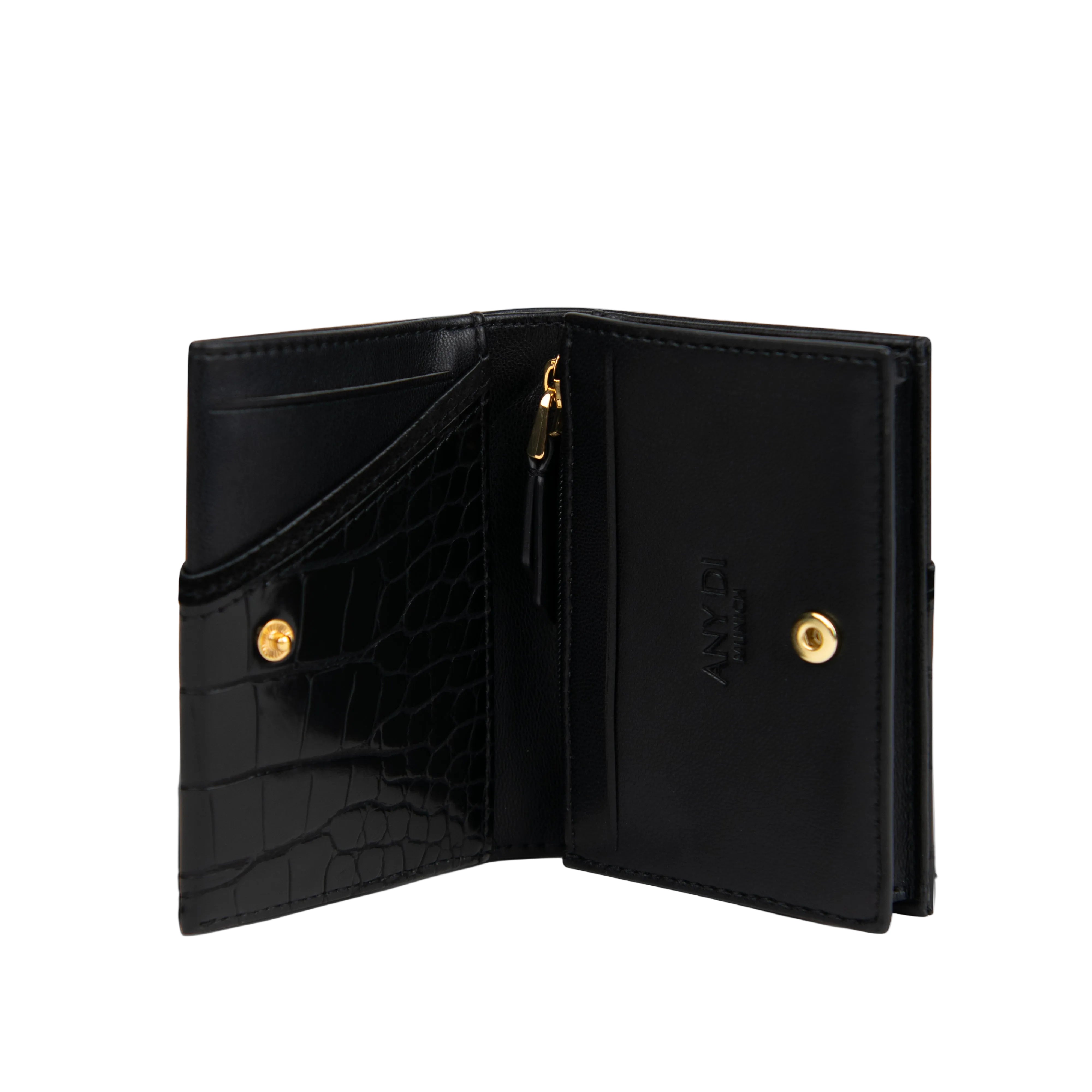 • Material: Constructed with a luxurious blend of smooth black leather or vegan leather on the flap and a suede or nubuck material on the main body of the pouch.
