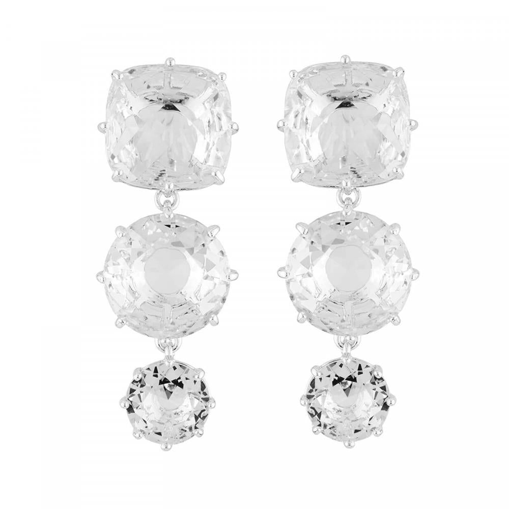 These earrings are composed with three hand-faceted round crystal stones of color following the purest tradition of Les Néréides Paris. The setting of this jewel for woman is made in silvery metal.