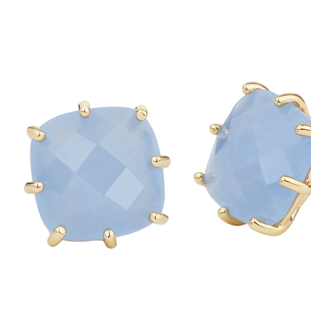 The Les Nereides Sky Blue Diamantine Square Stone Clip-On Earrings are a timeless statement piece that are sure to turn heads. These earrings feature hand-cut faceted glass stones in a soft milky sky blue hue. The claw setting reveals the beauty and underlines the delicacy of the square stones, making them the perfect accessory for any outfit. The luxurious and sophisticated design of these earrings make them an exceptional item that will stand out in any jewelry collection. Made of gold-plated brass and faceted glass, these clip-on earrings are sure to be a treasured piece of jewelry for many years to come. SPECIFICATIONS: