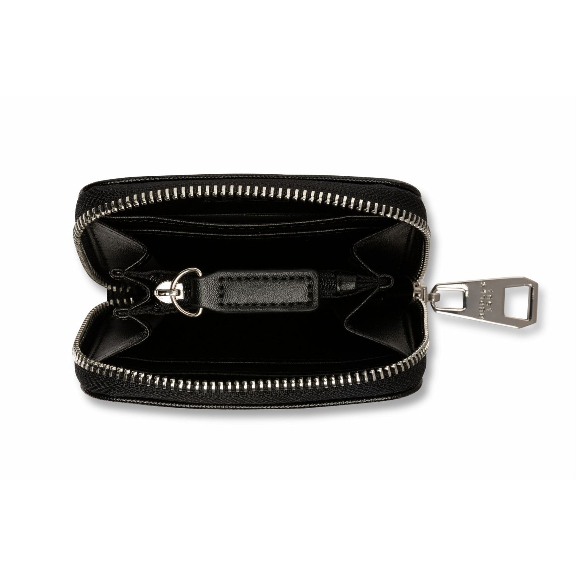 Solid-colored small wallet with saffiano effect and zip around fastening. The item is equipped with four inner credit card slots and with one central coin pocket with zipper. The accessory is refined by the embossed Archive logo at the front. Length 11 cm x Height 7 cm x Width 2 cm.