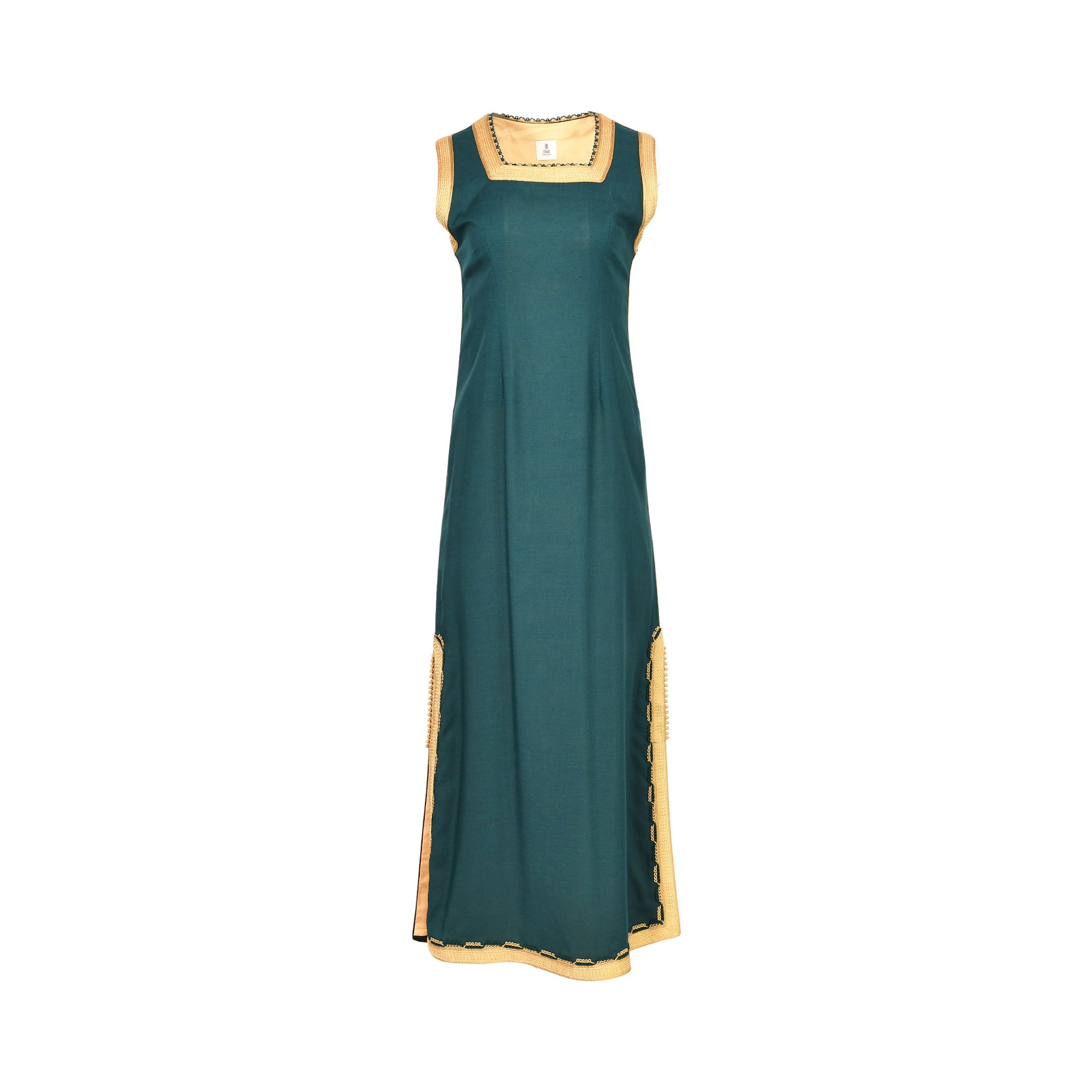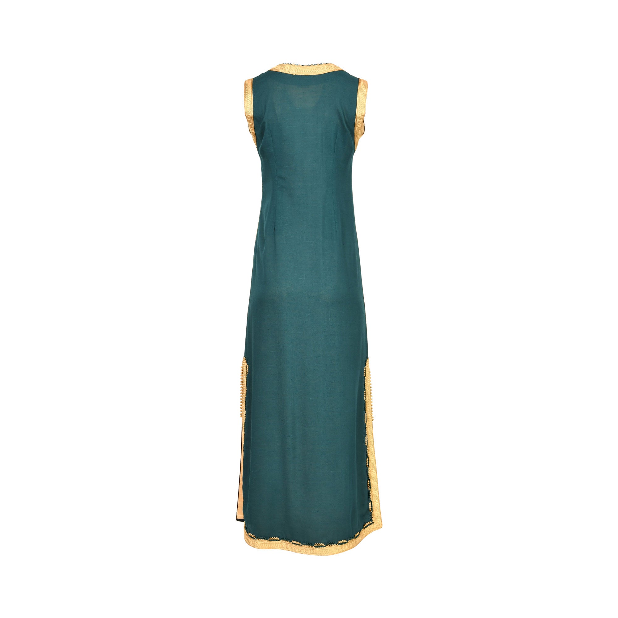 • The green and mustard color combination enhances the dress’s aesthetic with timeless Moroccan charm.