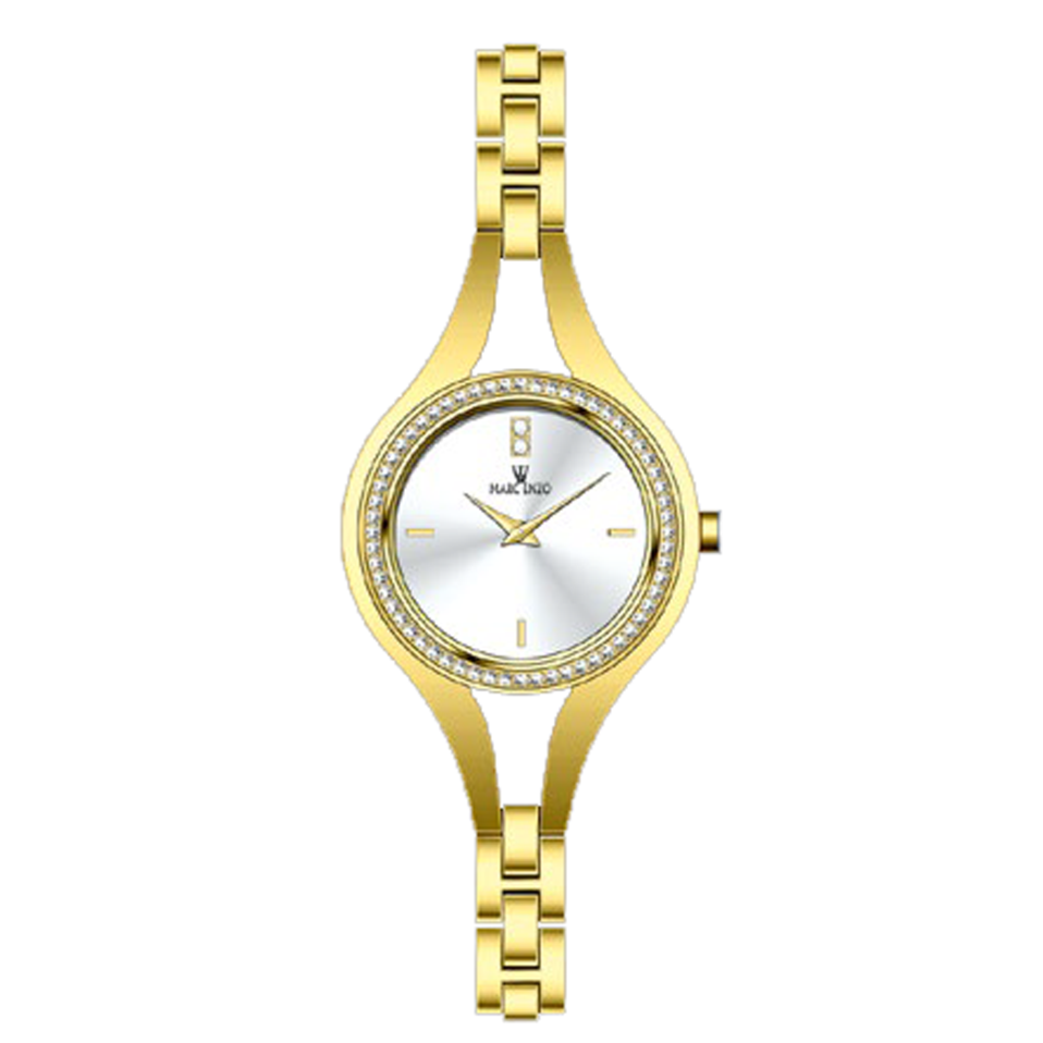 Elevate your style with the Marc Enzo EZ69-GG-1 Women's Watch. This elegant timepiece features a captivating white dial adorned with sparkling crystals, creating a timeless and sophisticated look. The gold-tone stainless steel case and bracelet add a touch of luxury. Powered by precise quartz movement, this watch ensures accurate timekeeping.