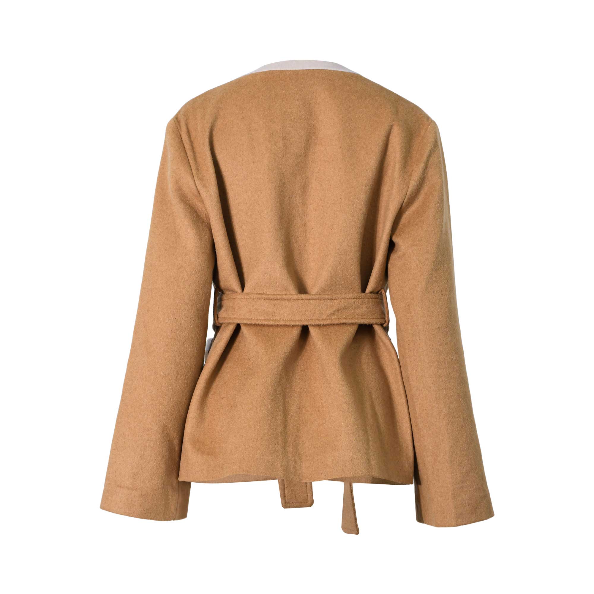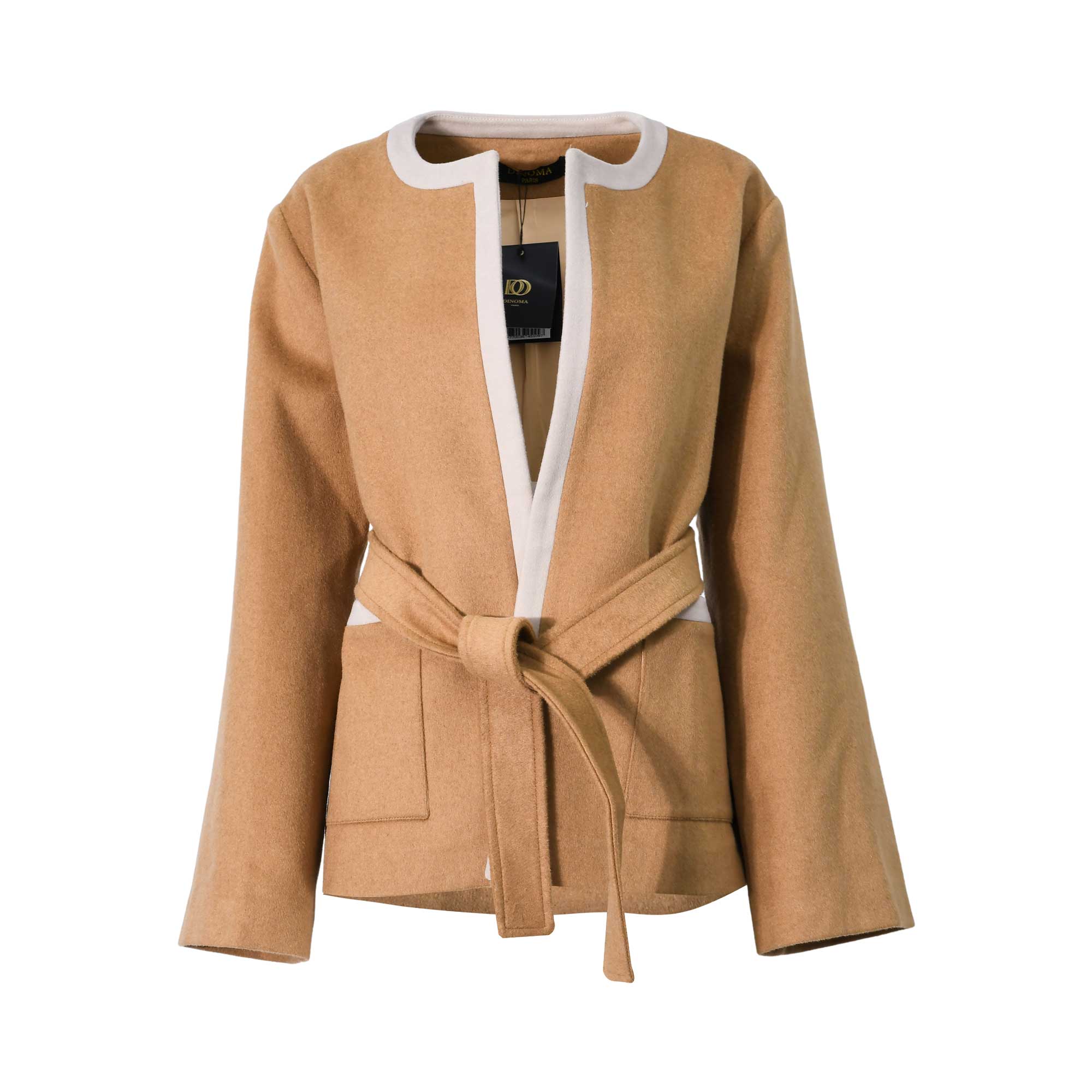 Dinoma Women's Wool Blend Belted Jacket with Contrast Trim