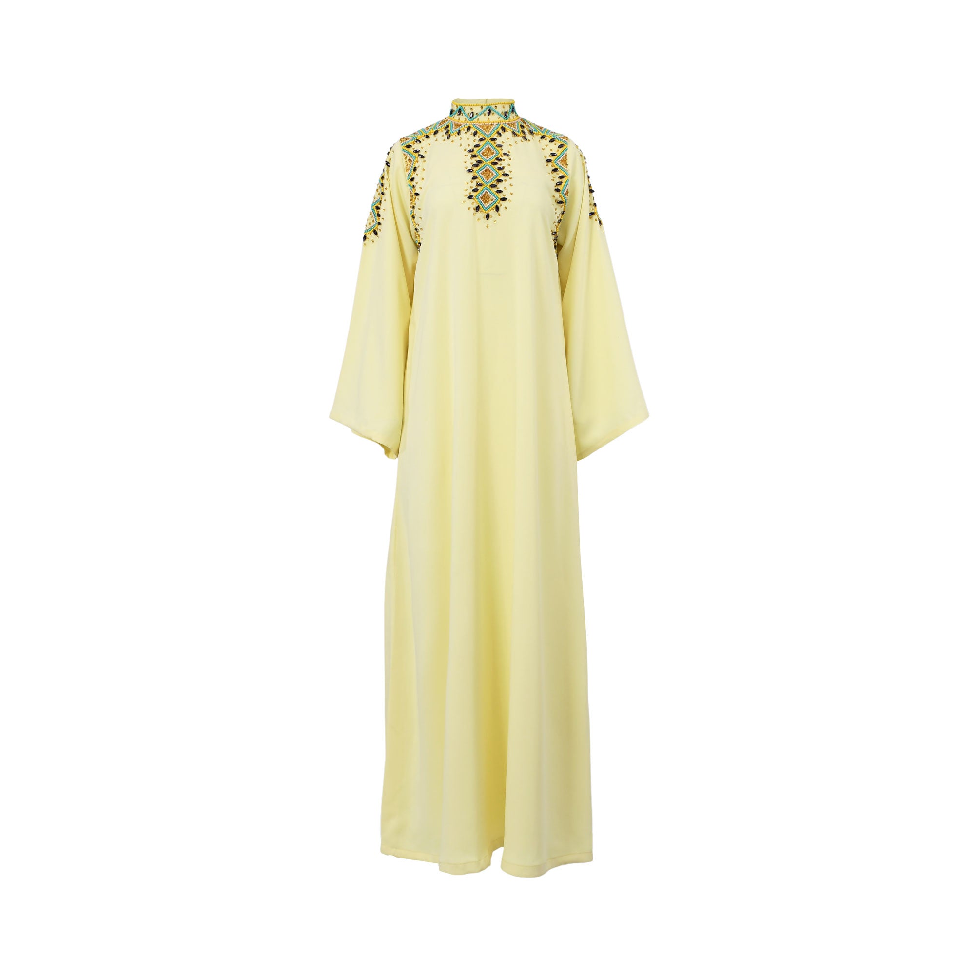 Ik Line Women's Yellow Embellished High-Neck Jalabiya