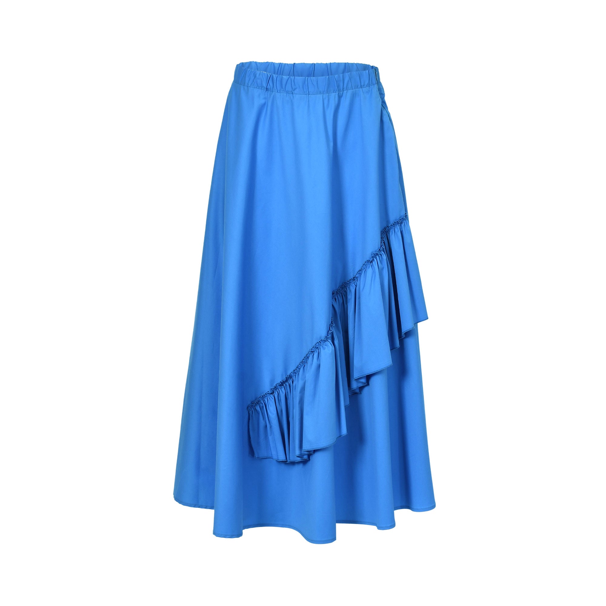 The Milva Mi Women's Blue Skirt is a stylish and versatile piece perfect for a variety of occasions. Featuring a charming ruffle design, the skirt adds a playful and feminine touch to any outfit. Its elasticated waistband ensures a comfortable and adjustable fit, making it suitable for different body shapes and sizes. The flared silhouette enhances movement and creates a flattering shape, allowing for both ease and elegance. Crafted in a vibrant blue hue, this skirt is an excellent choice for those looking to add a pop of color to their wardrobe while maintaining a chic and effortless look.