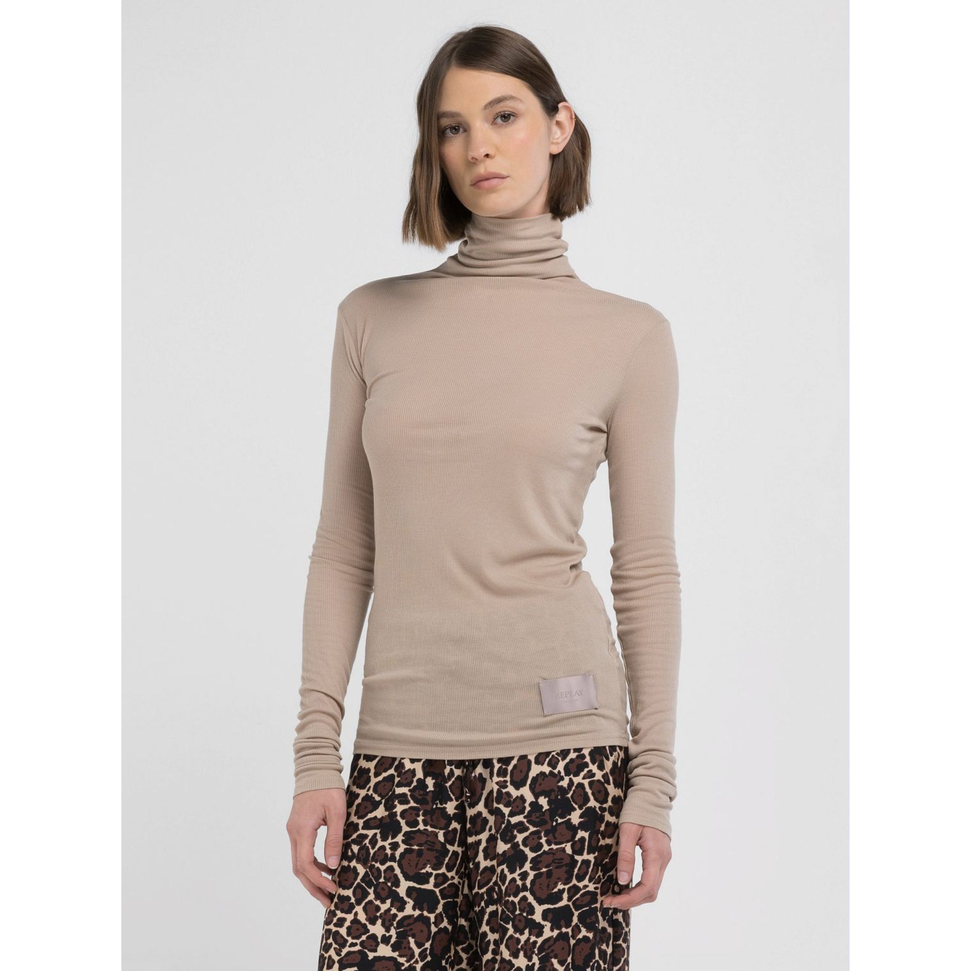 Replay Women's Slim Fit Top with Long Sleeve and Hight Neck