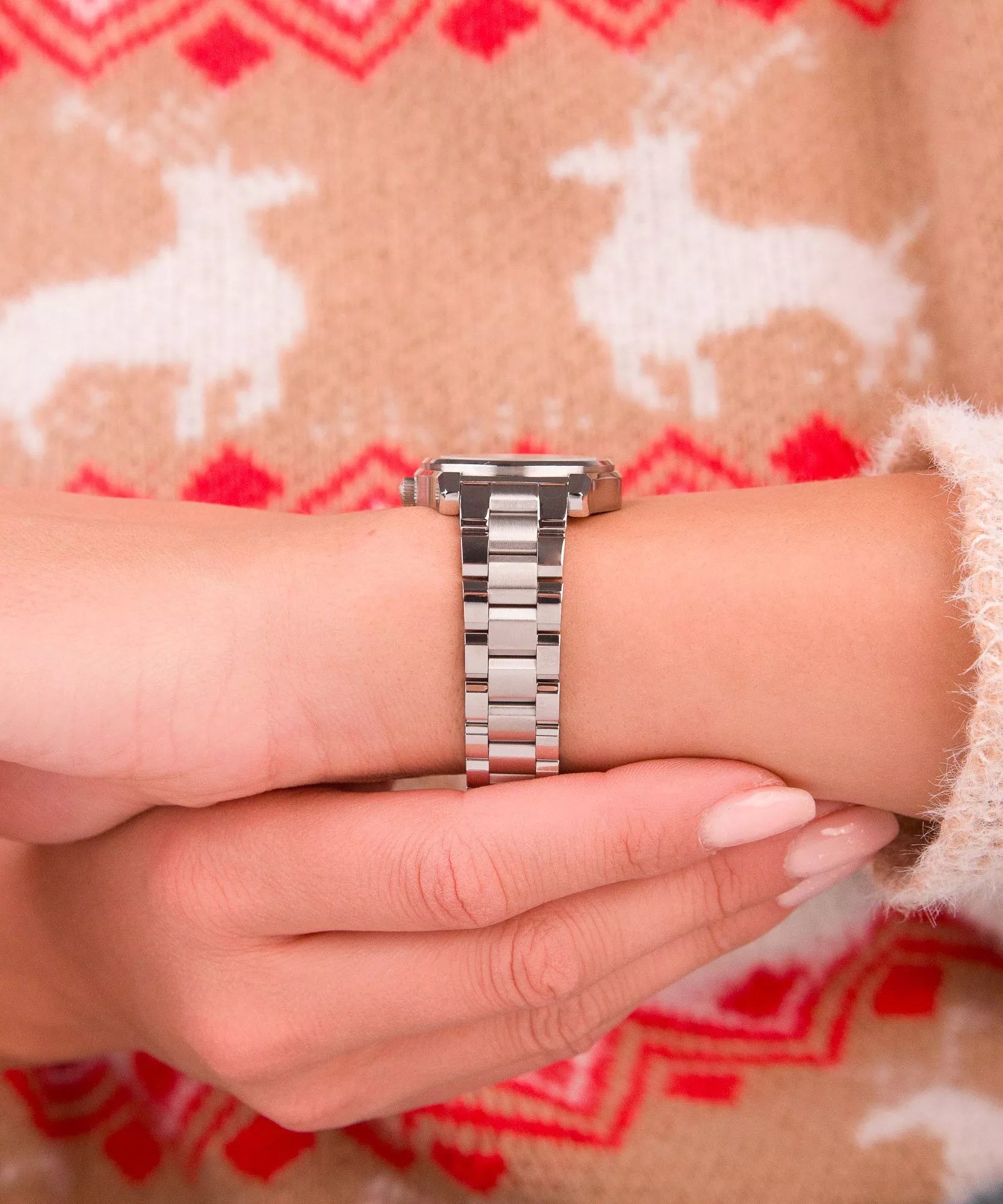 The Emporio Armani Federica AR11557 women's watch is made of silver-colored stainless steel. The mother-of-pearl dial features a date of the days of the month and is protected by mineral glass. The whole thing works on the basis of a quartz mechanism.