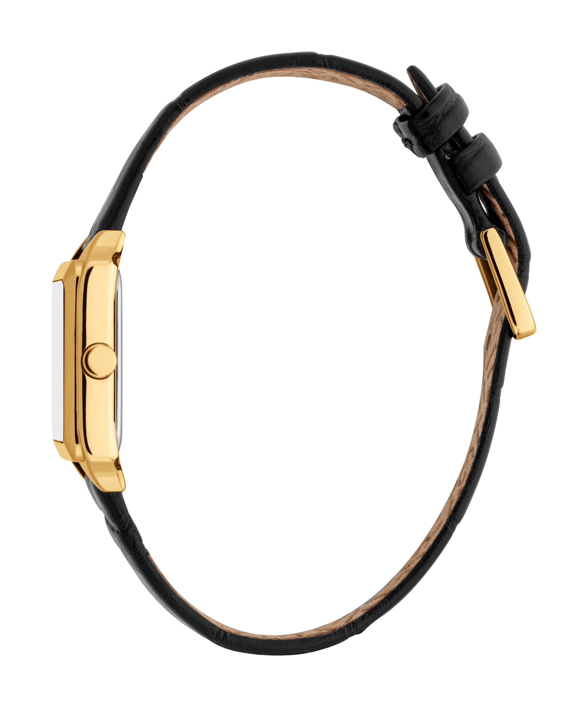Esprit Ladies Rectangular Gold-Tone Watch with Black Leather Strap