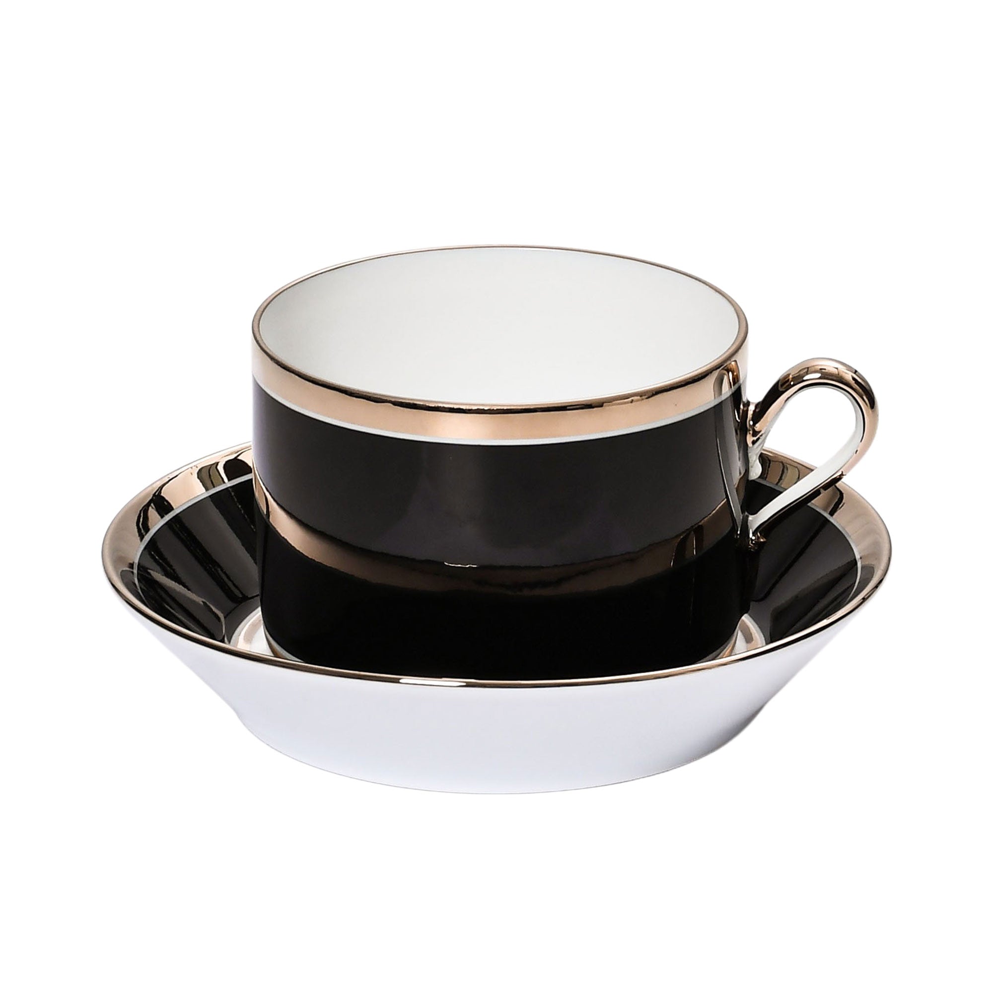 Richard Ginori Empire Countess Onyx Set Of 6 Tea Cup & Saucer