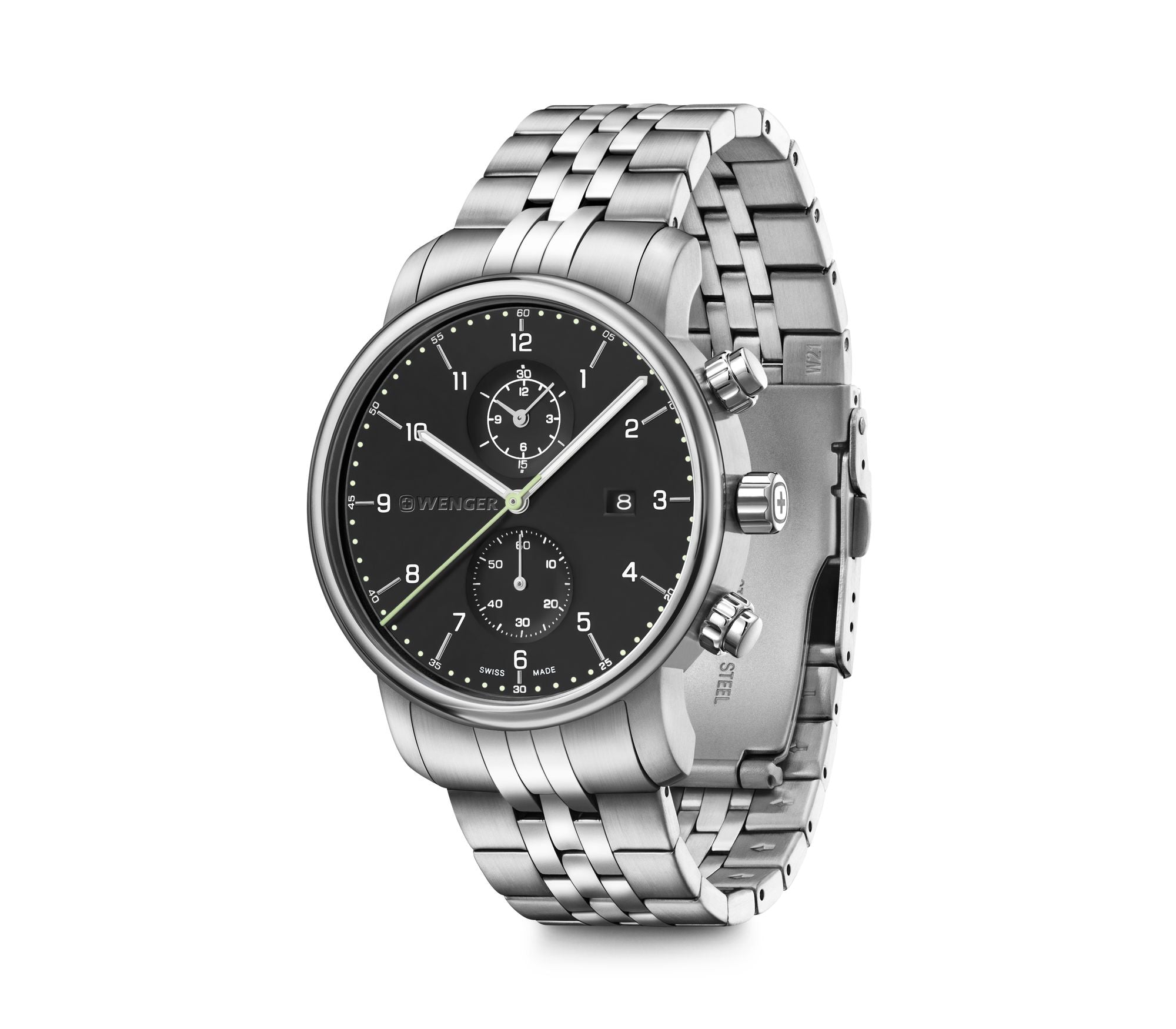 Wenger Urban Classic Chrono Gents Black Dial Stainless Steel Silver Watch