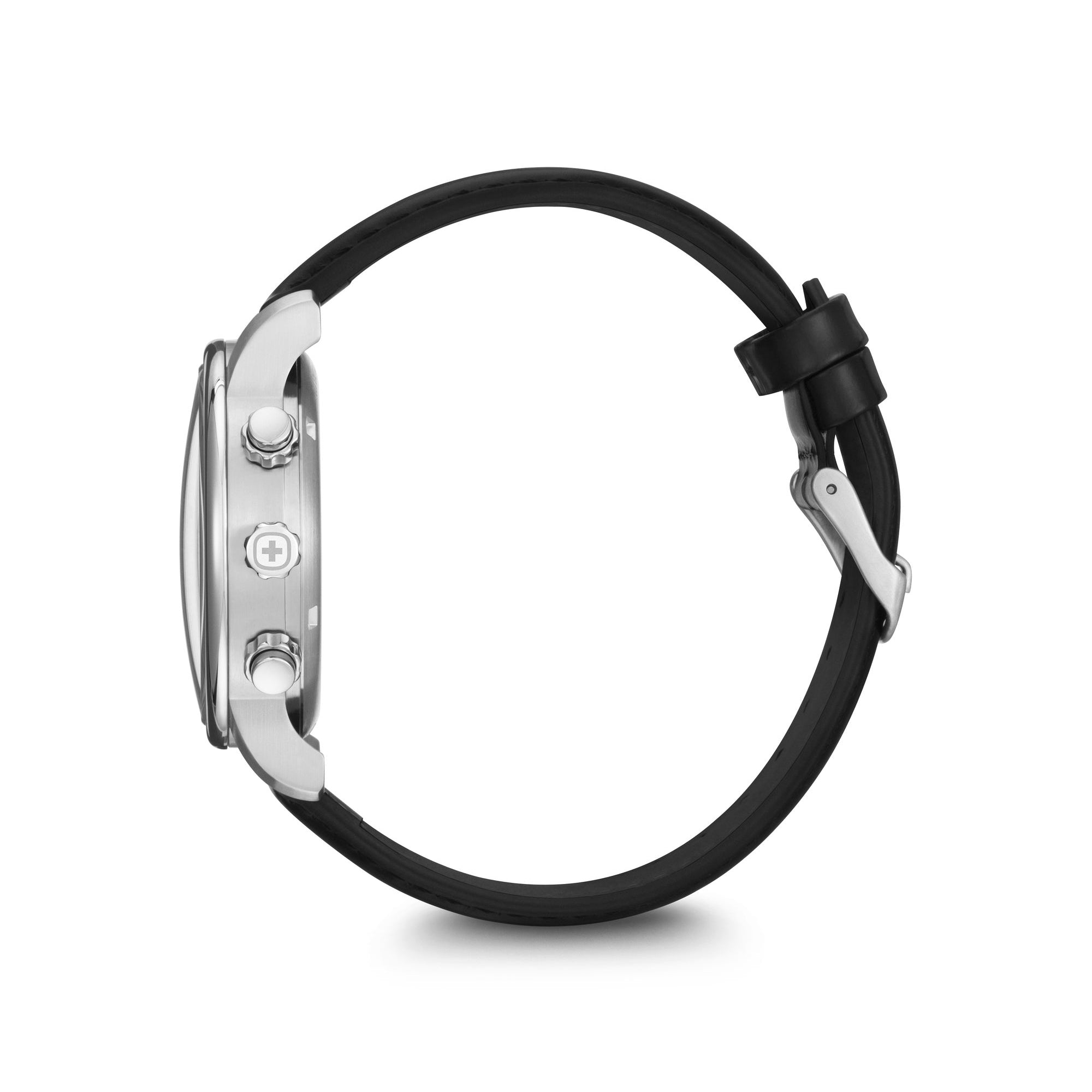 Minimalistic Classical Chrono The new Chrono edition by Wenger expands on the horological achievements of its Urban Classic range. The minute and second digits are also rounded in the centre to complement the dome-shaped dial and glass. Its vertical chrono movement has allowed the gears to be simplified, leading to a streamlined design. This timepiece represents your dedication to accuracy, superiority, and accomplishment. Time is of the essence, so why waste it? SPECIFICATIONS :