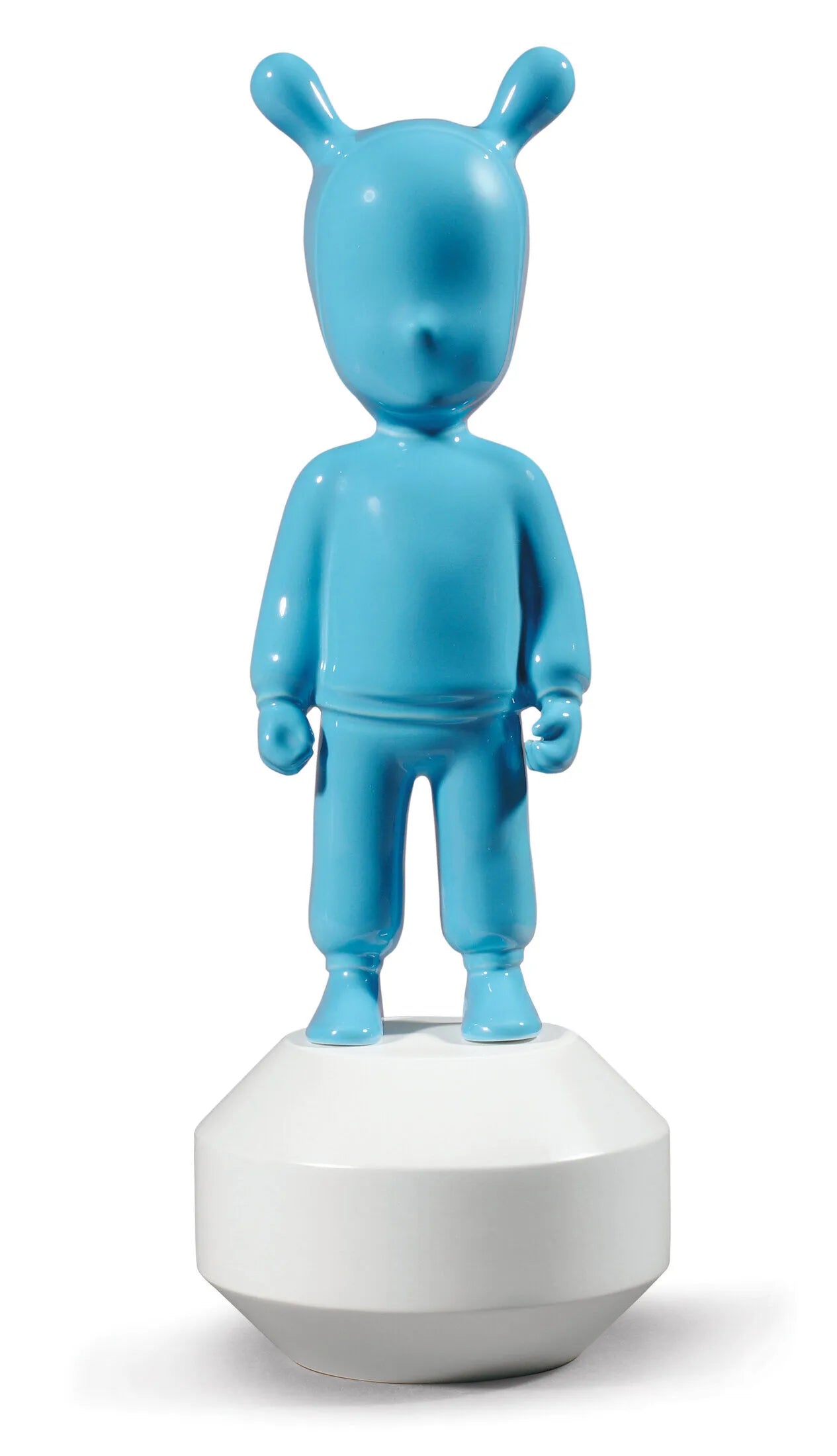 | The Little Blue Guest by Lladro, a figurine in glossy porcelain designed by Jaime Hayon for the collection The Guest by LLadró Atelier; the piece comes with a white base. The Atelier is the brand's ideas lab, where it commissions renowned artists from around the world to produce personalised versions of the guest. Hayon and Rolito and Tim Biskup and Gary Baseman and Devilrobots and Paul Smith all worked together on this series. SPECIFICATIONS