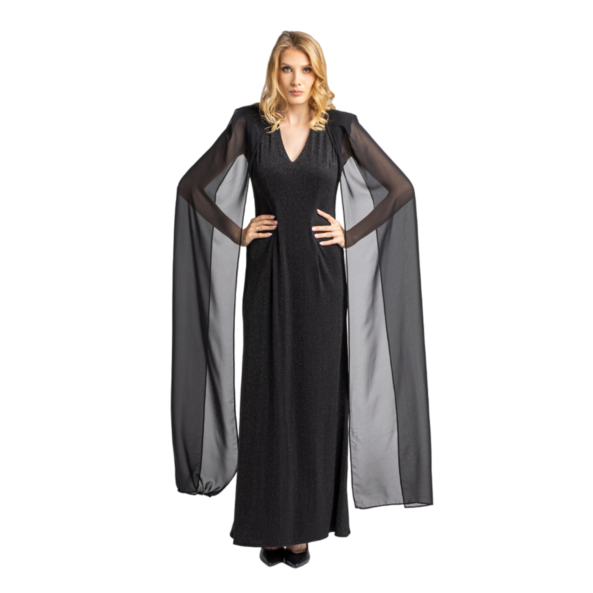 Ewa Stepaniuk Qadriyyah Dress, Brocade fabric, V-neck long dress with shiffon sleeves