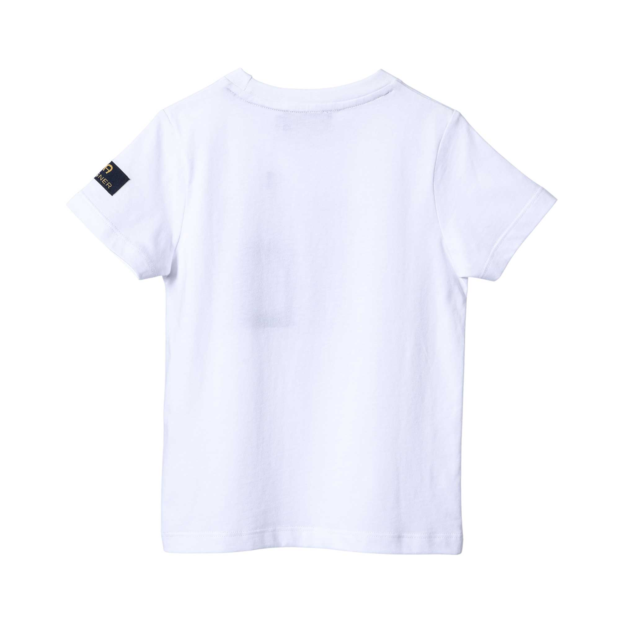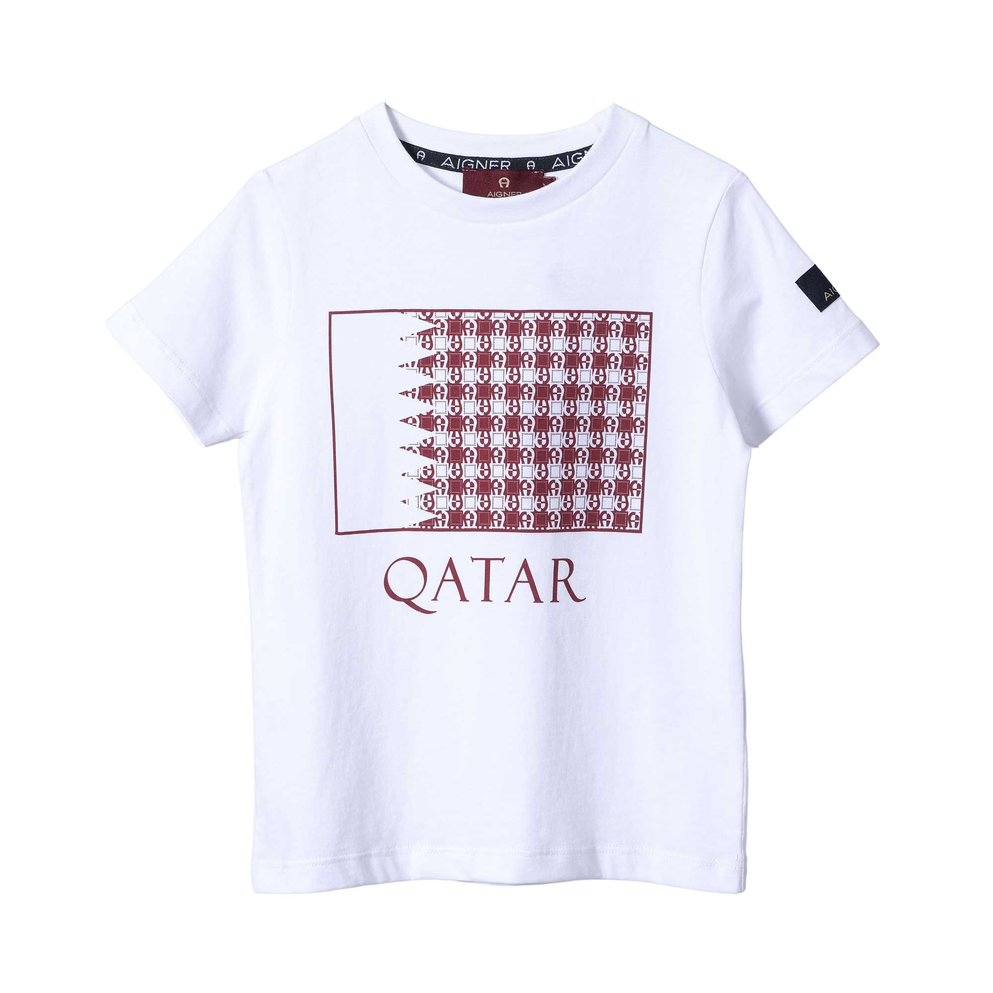 The Aigner Kids White T-Shirt is a stylish and comfortable piece of clothing for children. It features a round neck design and short sleeves, making it perfect for any casual occasion. The straight hem adds a clean and neat look to the t-shirt. One of the standout features of this t-shirt is the "Qatar" lettering written across the front in bold lettering. This adds a patriotic touch to the t-shirt, making it a great choice for children living in Qatar or those who have a connection to the country. Another prominent feature of this t-shirt is the brand logo placed on one sleeve. The Aigner logo is well-known and adds a touch of luxury and sophistication to the t-shirt. The logo is designed in a contrasting maroon color, making it stand out against the white background. Additionally, the Qatar flag is incorporated into the brand logo, printed in a subtle way. This adds an extra touch of pride and nationalism to the t-shirt. The Aigner Kids White T-Shirt is a comfortable, stylish, and patriotic choice for children's clothing, making it a must-have addition to any wardrobe. SPECIFICATIONS
