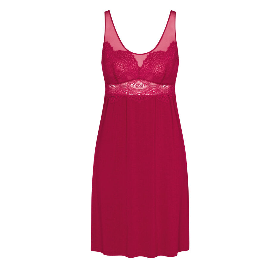 This Triumph Darling Spotlight Night Dress is as cozy as it is stylish, developing a comfortable, yet luxurious sleeping experience. Crafted with a combination of delicate lace, soft tulle and comfortable viscose, this nightdress offers superior breathability for an airy feeling as you sleep. The round neckline and adjustable straps offer variety in fit, while an elastic under-bust ribbon provides just the right fit and hold. This scalloped bottom, mid-length nightdress is designed with traditional femininity in mind and is perfect for the modern sophisticate. With sheer lace inserts beneath the bust and a high-quality construction, this Triumph Darling Spotlight Night Dress is a must-have for any fashionable sleepwear wardrobe.