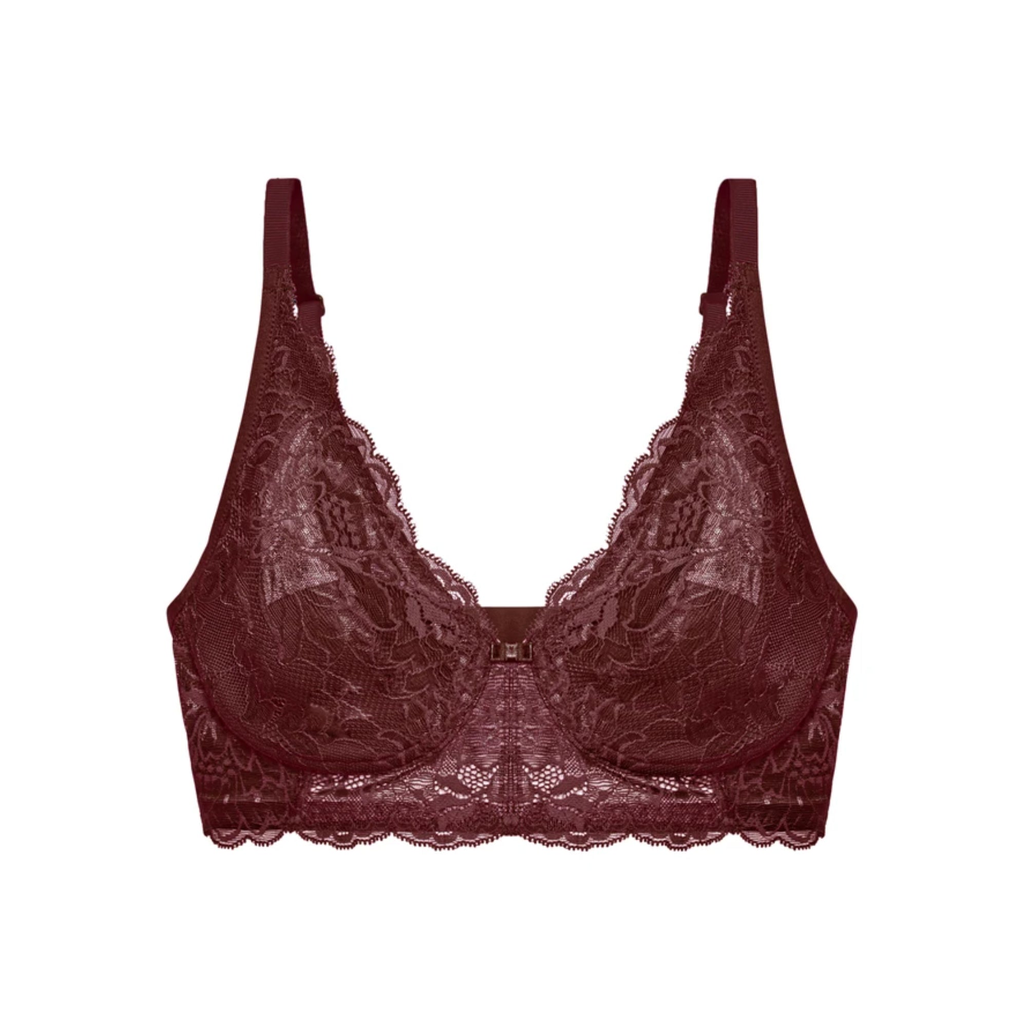 The Triumph Amourette Charm non-wired bra is the perfect solution for those looking for a comfortable yet shapely fit. This wireless bra is designed with soft and stretchy eco-conscious lace that is not only beautiful but also invisible under clothing. The upper cups and inner cup slings that provide additional support allow this bra to mould and fit your bust like a wired bra without compromising on comfort. This wireless bra offers all the shaping benefits you would expect from a wired bra without any of the unwanted wires. It has no metal components meaning it is suitable for those with metal allergies and sensitive skin. Not only that, but the breathable microfibre fabric keeps you feeling cool and comfy all day long. The Triumph Amourette Charm non-wired bra offers both comfort and shape. This is the perfect choice for those looking for long-lasting shape and support without any discomfort. SPECIFICATIONS:
