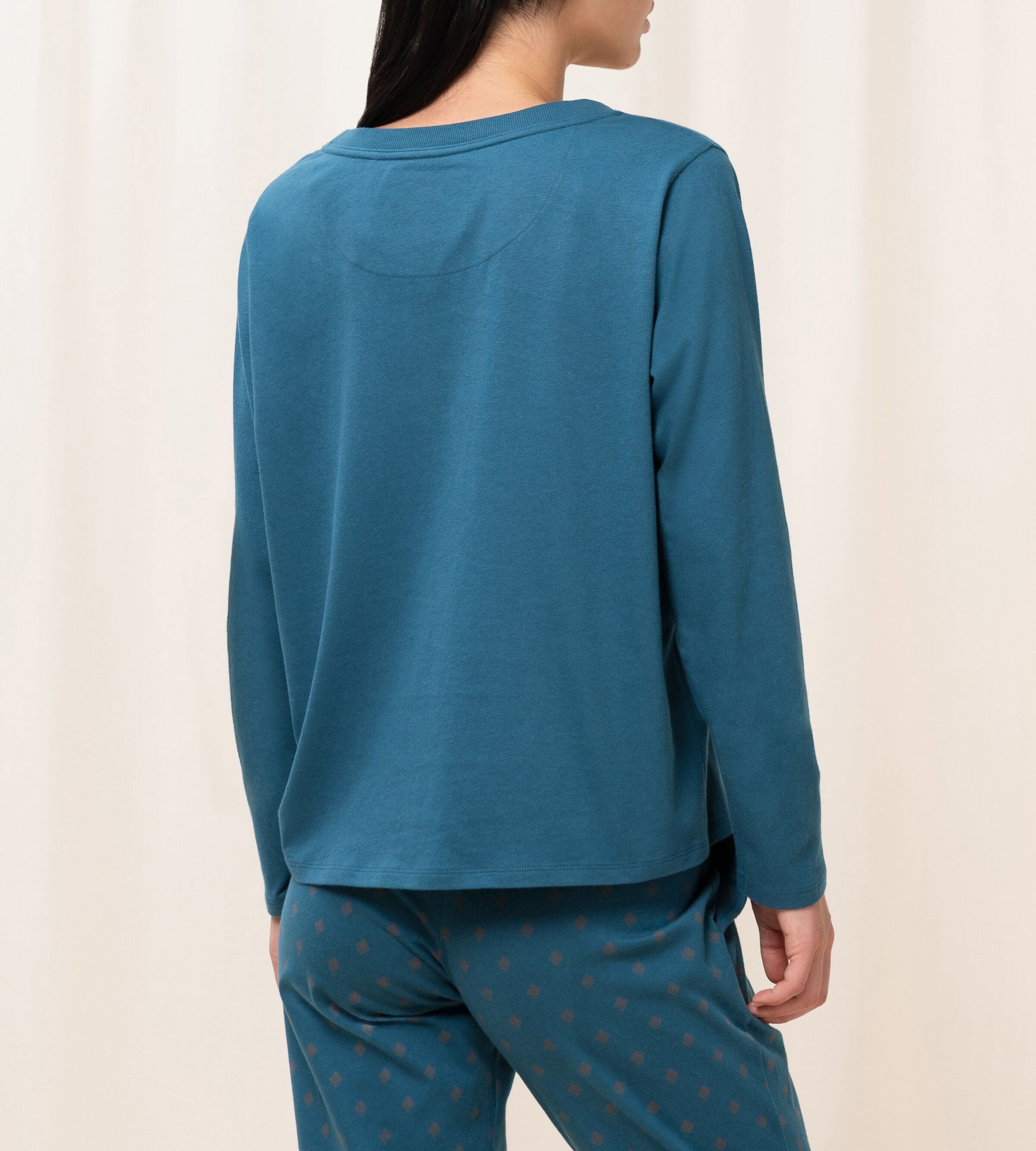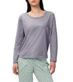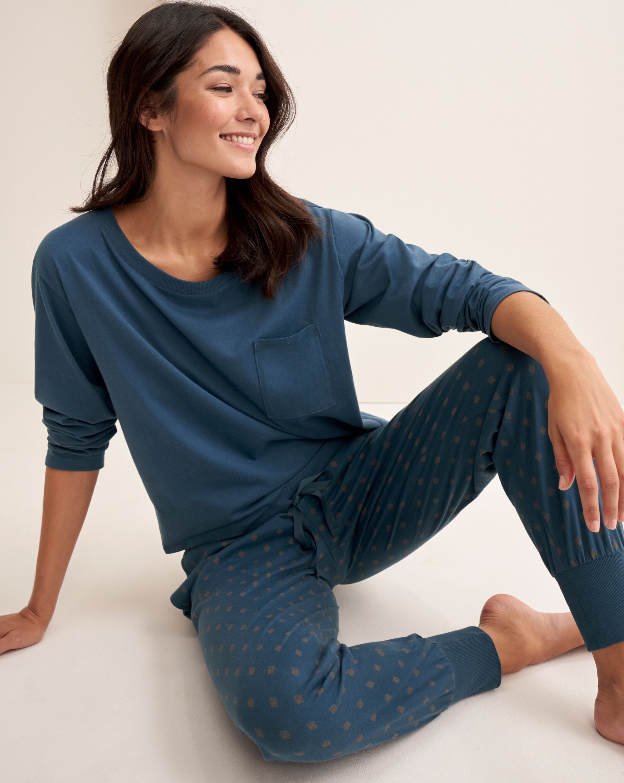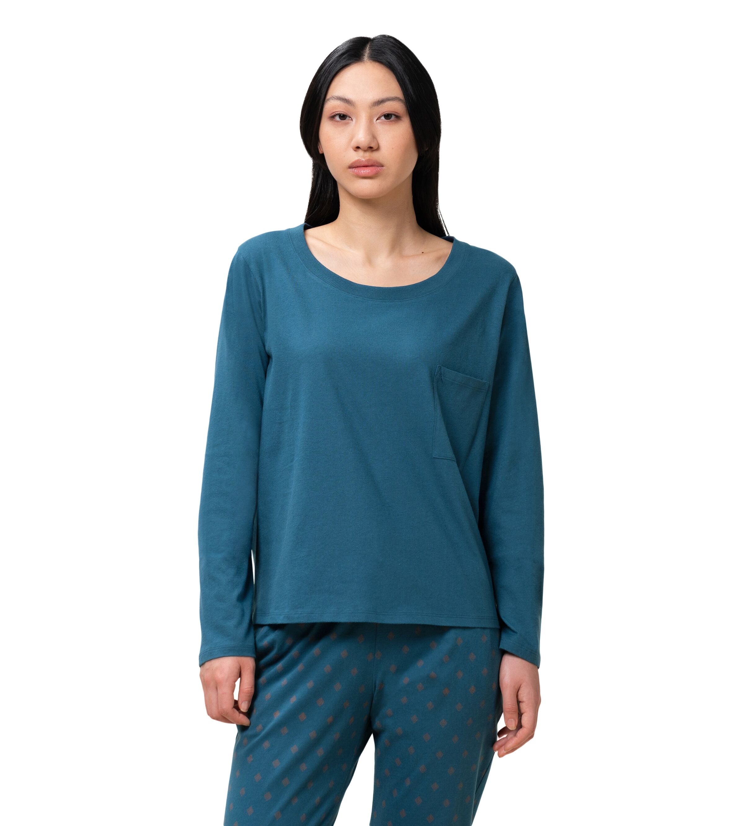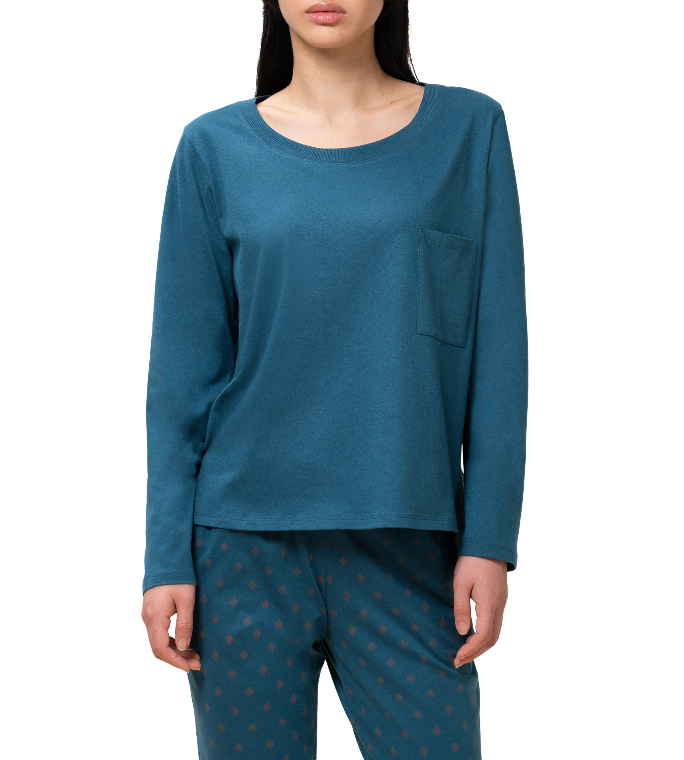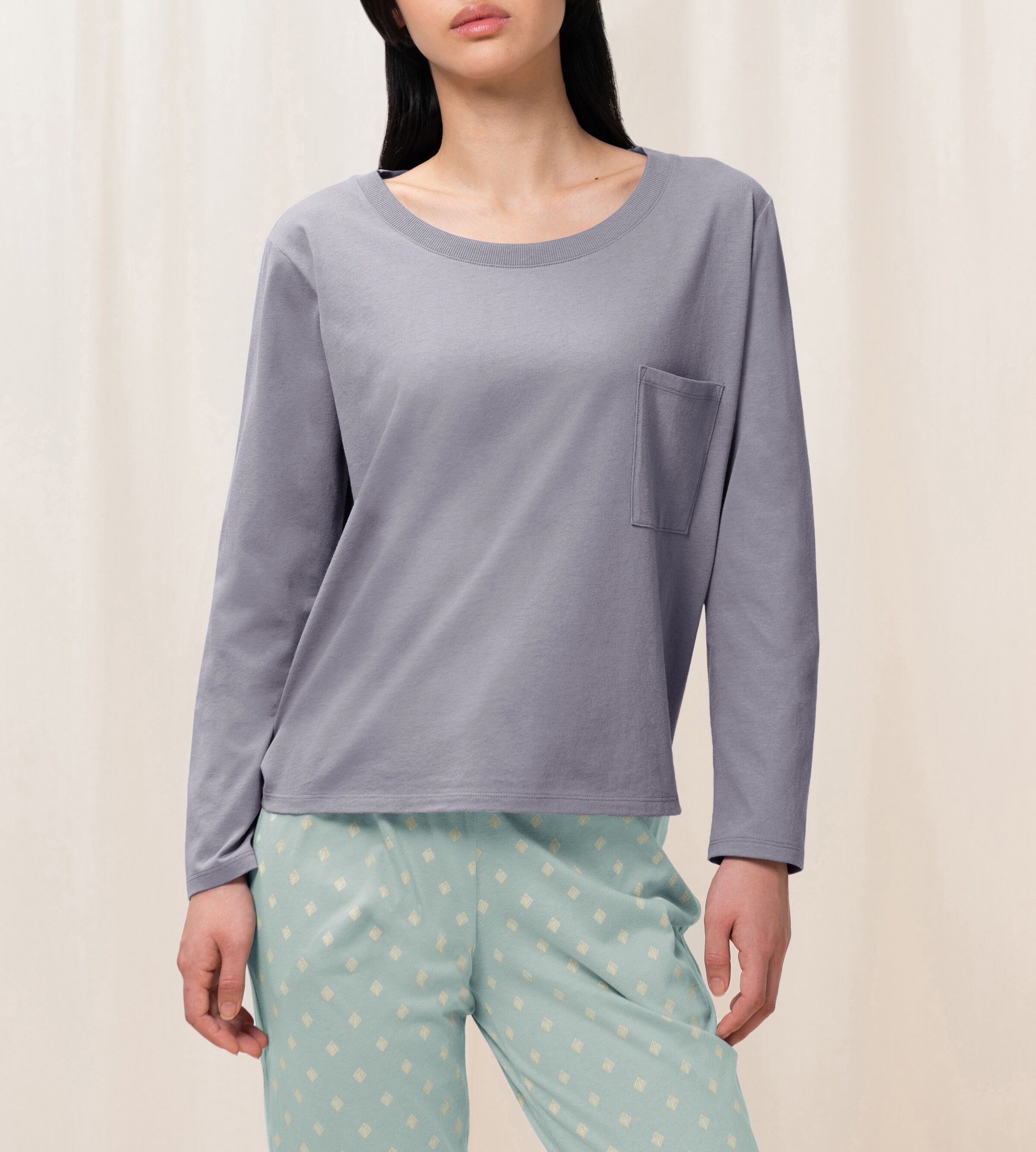 | The Triumph pajama set includes a long-sleeved top with a round neck and trousers with an elegant design, both made from natural materials and certified by Oeko-Texas. The Triumph pajama set includes a long-sleeved top with a round neck and trousers with an elegant pattern. It has a pocket on the chest. Both are made from a natural, Oeko-Tex certified material that is 100% cotton , providing significant comfort while sleeping. SPECIFICATION :