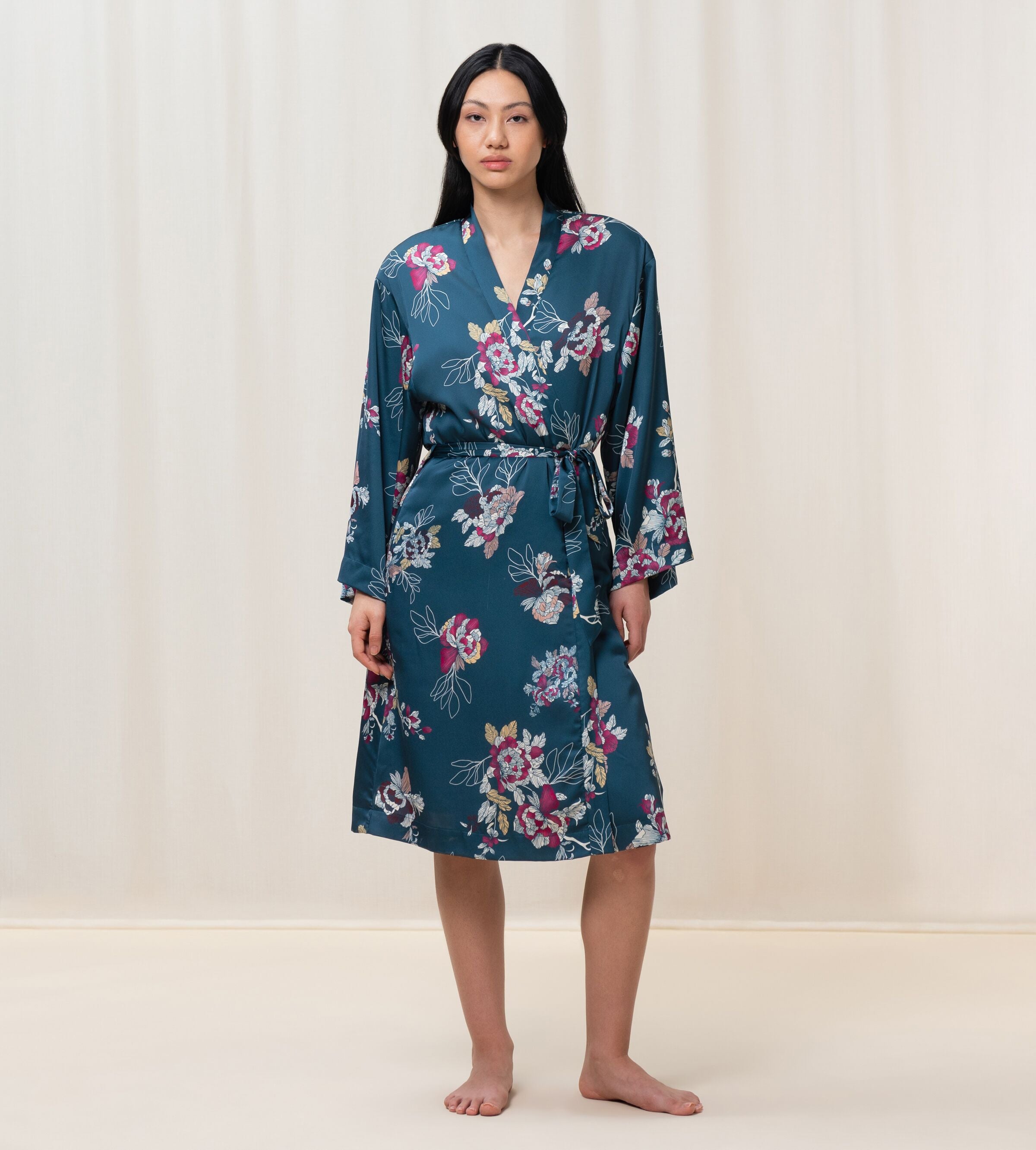 | Triumph paired the original patterns that it designed specifically for you with its eco-friendly fabric options. It is designed in the style of a kimono and features a floral pattern throughout. Long, slack sleeves that match the belt are featured on it. You will not only feel comfortable due to the gentle texture of these products, but you will also feel stylish and sophisticated at any time of the day due to the style of them. SPECIFICATION :