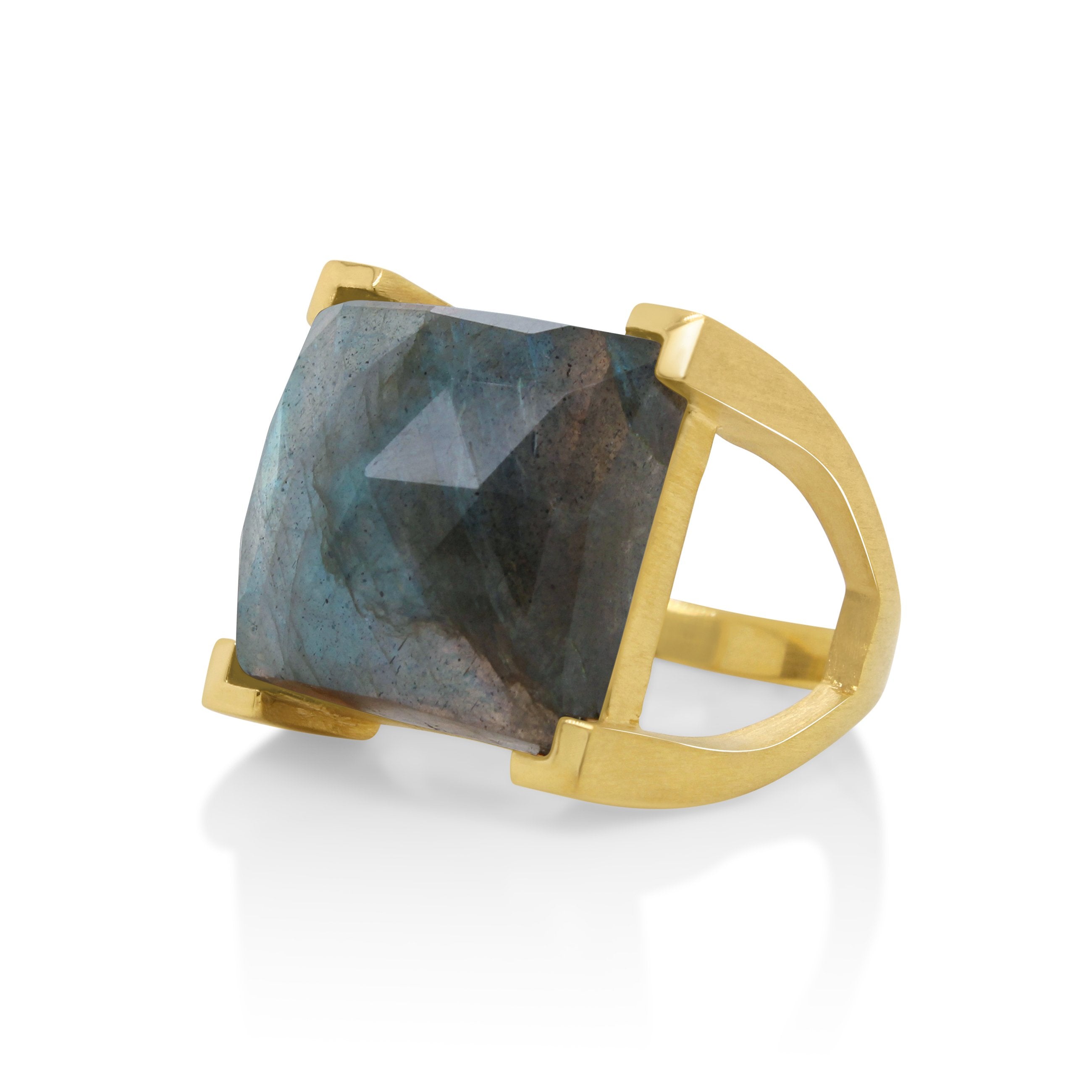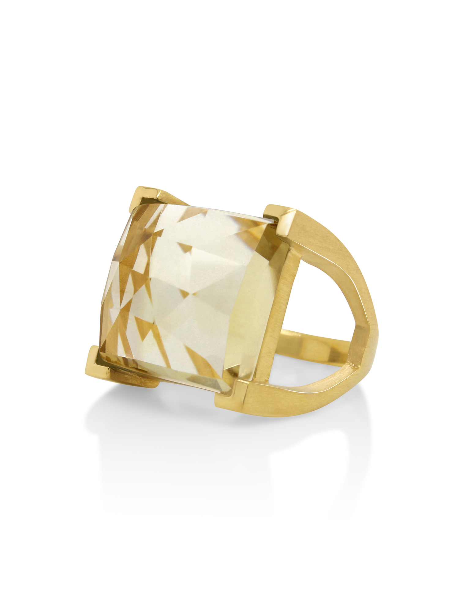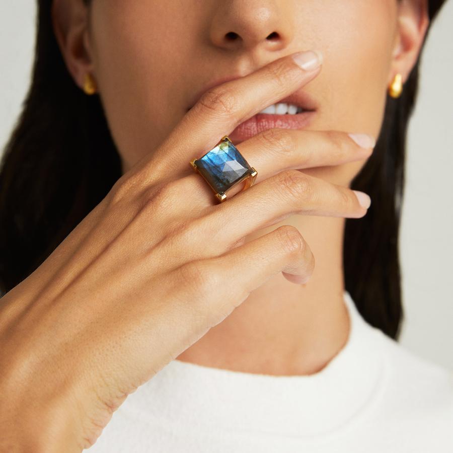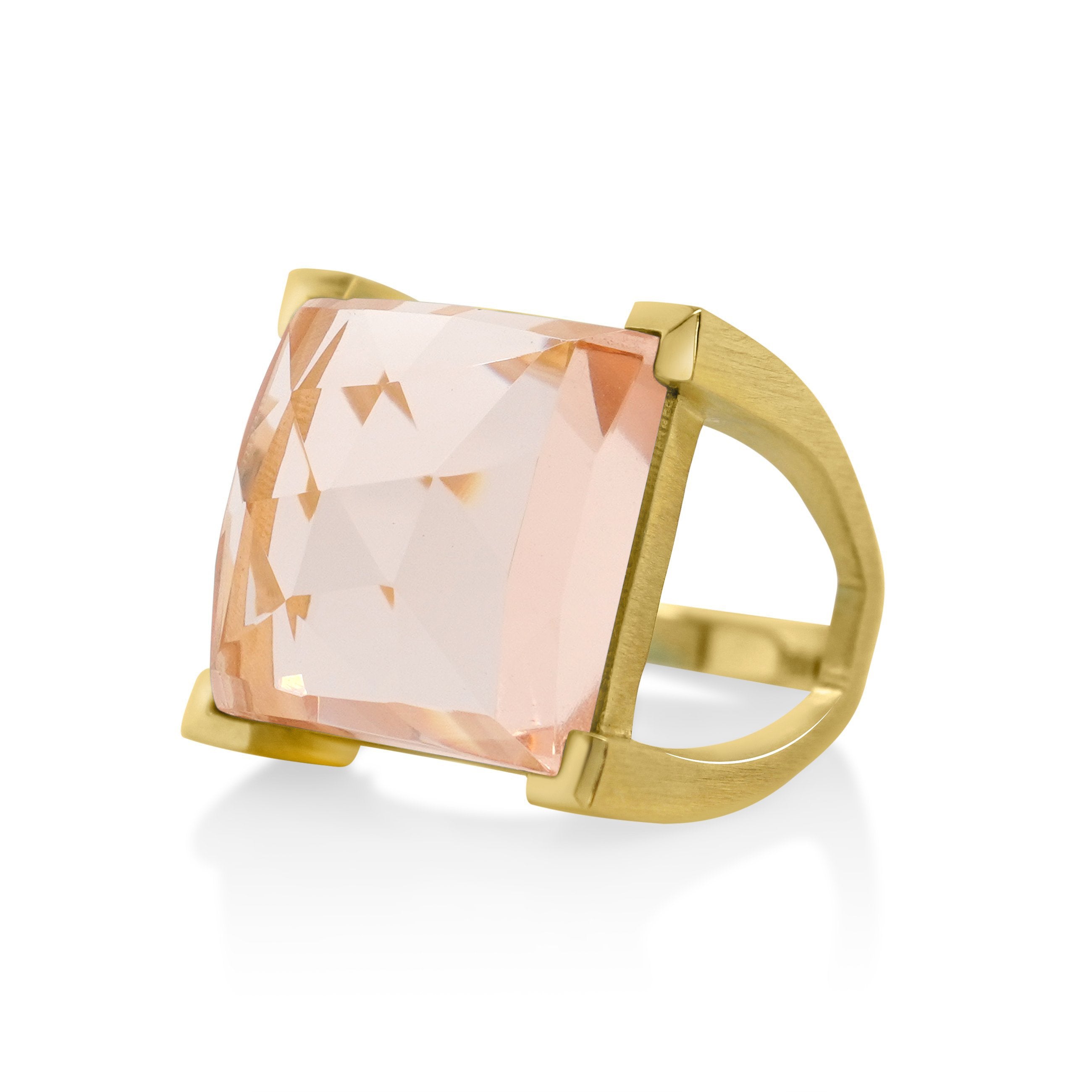 The Dean Davidson Plaza Ring is a truly eye-catching and statement-making piece of jewelry. Its bold, architectural lines combined with the cushion-cut topaz centrepiece grab attention and stand out from the crowd. The ring is finely crafted using 22K yellow gold plated brass, making it incredibly durable and built to last. The Plaza Ring is the perfect balance between subtle and statement-making. It is ideal for adding a touch of vibrancy to an evening look, while still being comfortable enough to wear every day. The topaz shows captivating flashes of light, and is backed up by a setting of clear-cut lines sure to grab attention. The Dean Davidson Plaza Ring is an excellent choice for anyone looking to make a splash with their jewelry selection. It is the perfect blend of sophistication and modern design, sure to be the center of attention wherever it is worn. SPECIFICATIONS