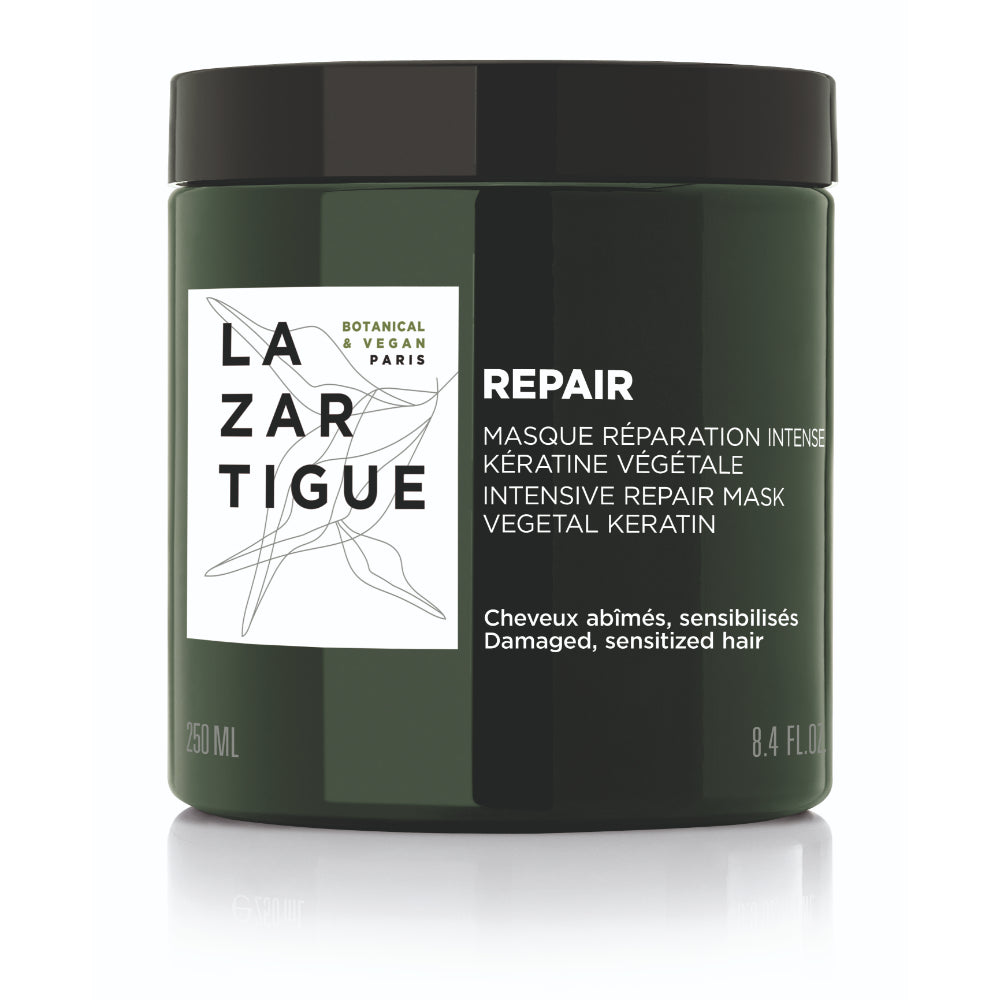 | Lazartigue Repair Mask, 250 ml, This mask, which is filled with vegetal keratin, restores damage to the hair at a deeper level and deeply restructures the fibre. It is stronger, silkier, and less likely to split when the hair is reinforced, as if it were fortified from the inside out. Repair Mask is composed of 91% elements that are produced from natural sources. The vegan formulation does not contain any sulphates or silicones. SPECIFICATIONS