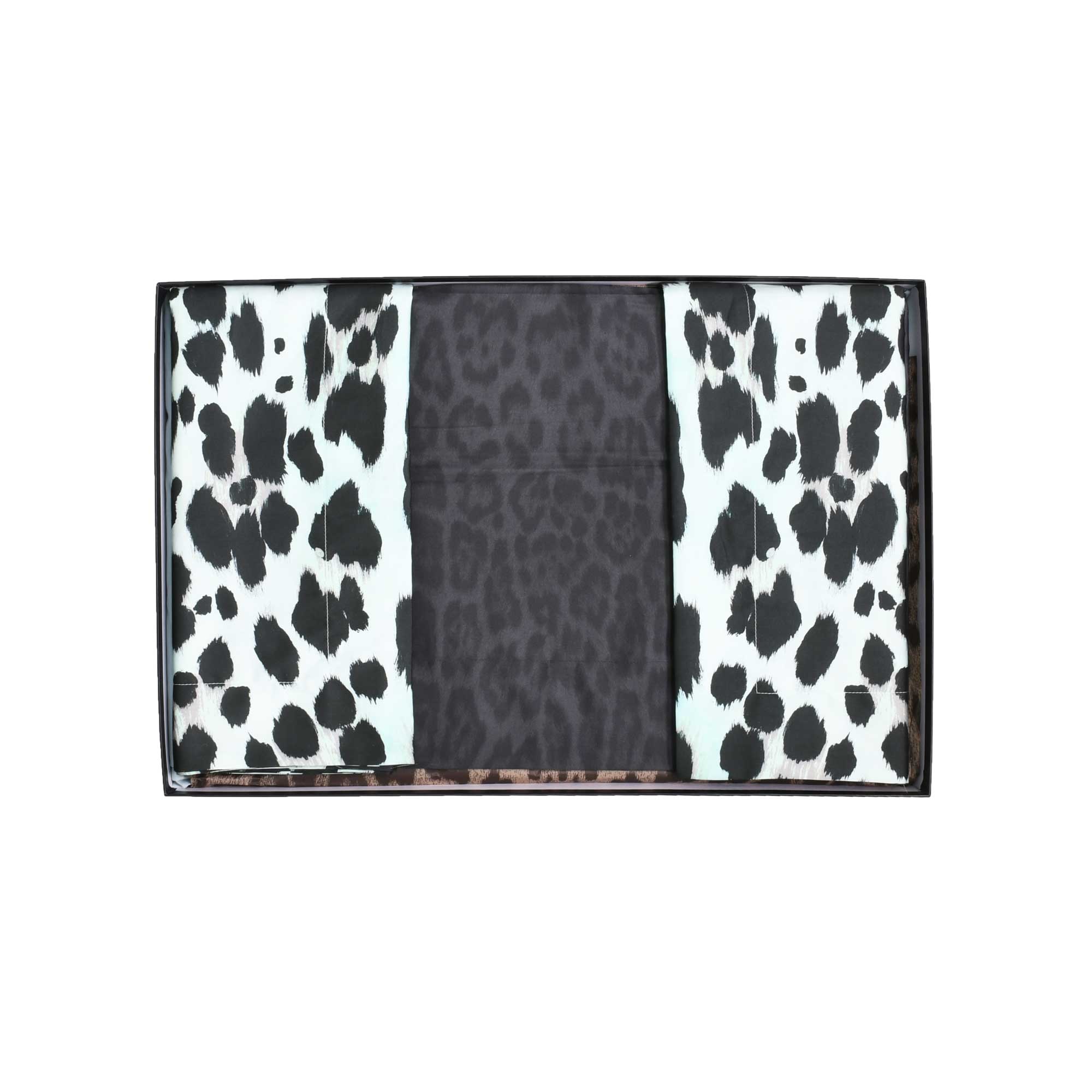 The Roberto Cavalli Queen of Sicily Bedsheet Set and Comforter is the perfect way to add a stylish and unique touch to your bedroom. This bedding set features a beautiful and unique bold leopard print, which is sure to be a conversation starter for any bedroom. The sheets and comforter are crafted from high quality cotton satin with a 300 thread count, ensuring comfort and durability that will last for years to come. The set also comes with two pillowcases, a duvet cover, and a fitted sheet, making it the perfect complete set for any bedroom. The light, neutral colors of the set are perfect for any room, and the vibrant pattern will bring an extra bit of life and energy to your space. The Roberto Cavalli Queen of Sicily Bedsheet Set and Comforter is sure to be the perfect addition to your bedroom. SPECIFICATIONS: