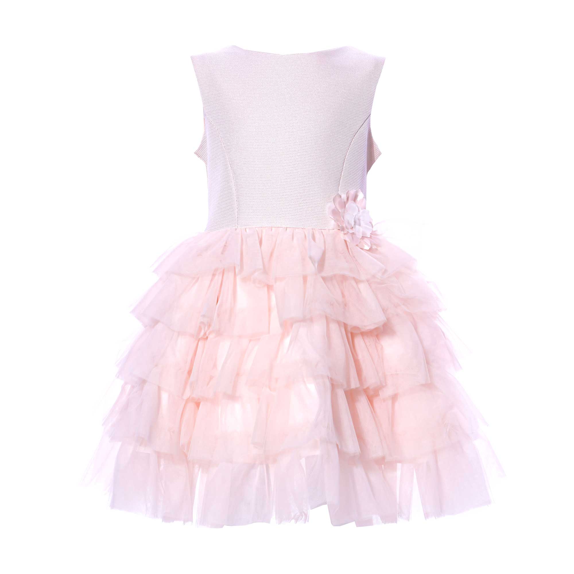 The Primi Eventi Kids Girl's Pink Dress is a beautiful and stylish dress for any special occasion. Featuring a layered pleated dress, fitted bodice, frill skirt, round neck, sleeveless, and concealed back zip closure, this dress is sure to make your daughter look lovely. The big tulle bow at the back and flower at the front adds a touch of charm and femininity to the dress, while the lined, flary design ensures the dress is comfortable to wear. Perfect for birthday parties, weddings, and other special events, this dress will make your daughter look her best. With its timeless design and bright, cheerful color, your daughter is sure to stand out in the crowd. SPECIFICATIONS: