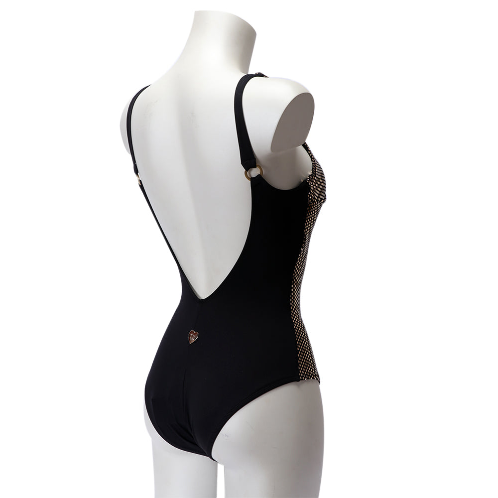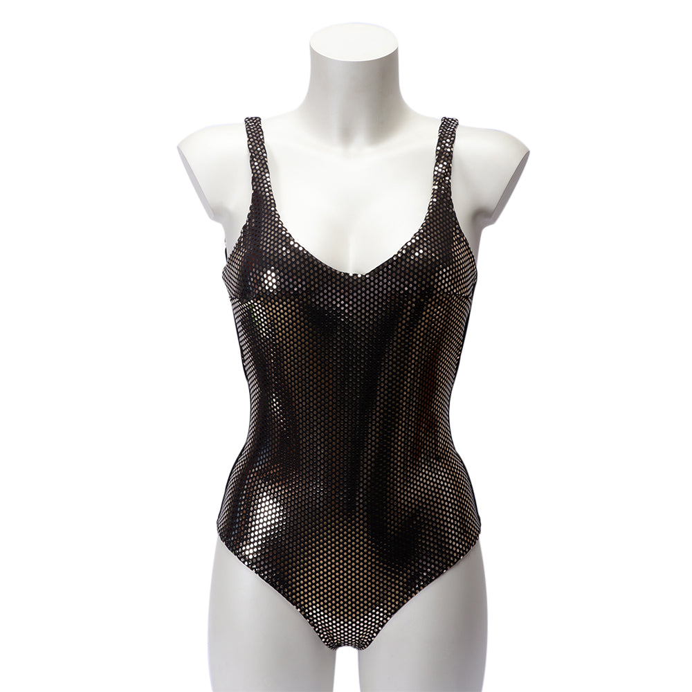 This one-piece swimsuit would be a great addition to any wardrobe. It features a classic polka dot print on laminated fabric, making it luxurious, textured and eye-catching. The plunge neckline and figure-enhancing fit work together to create a look that’s flattering and stylish. Best of all, the swimsuit’s versatility makes it perfect to wear on its own or with other pieces. Whether you pair it with a skort or a pair of flared wide-leg trousers, the result is always chic. The Italian fabric ensures a comfortable fit and maximum opacity, perfect for beach and pool days. Its variety of colors and finishes - from glossy to matte - guarantee you find the one that best fits your style. Its perfect for all body types, thanks to its flattering fit, and makes sure you’re the center of attention. SPECIFICATIONS