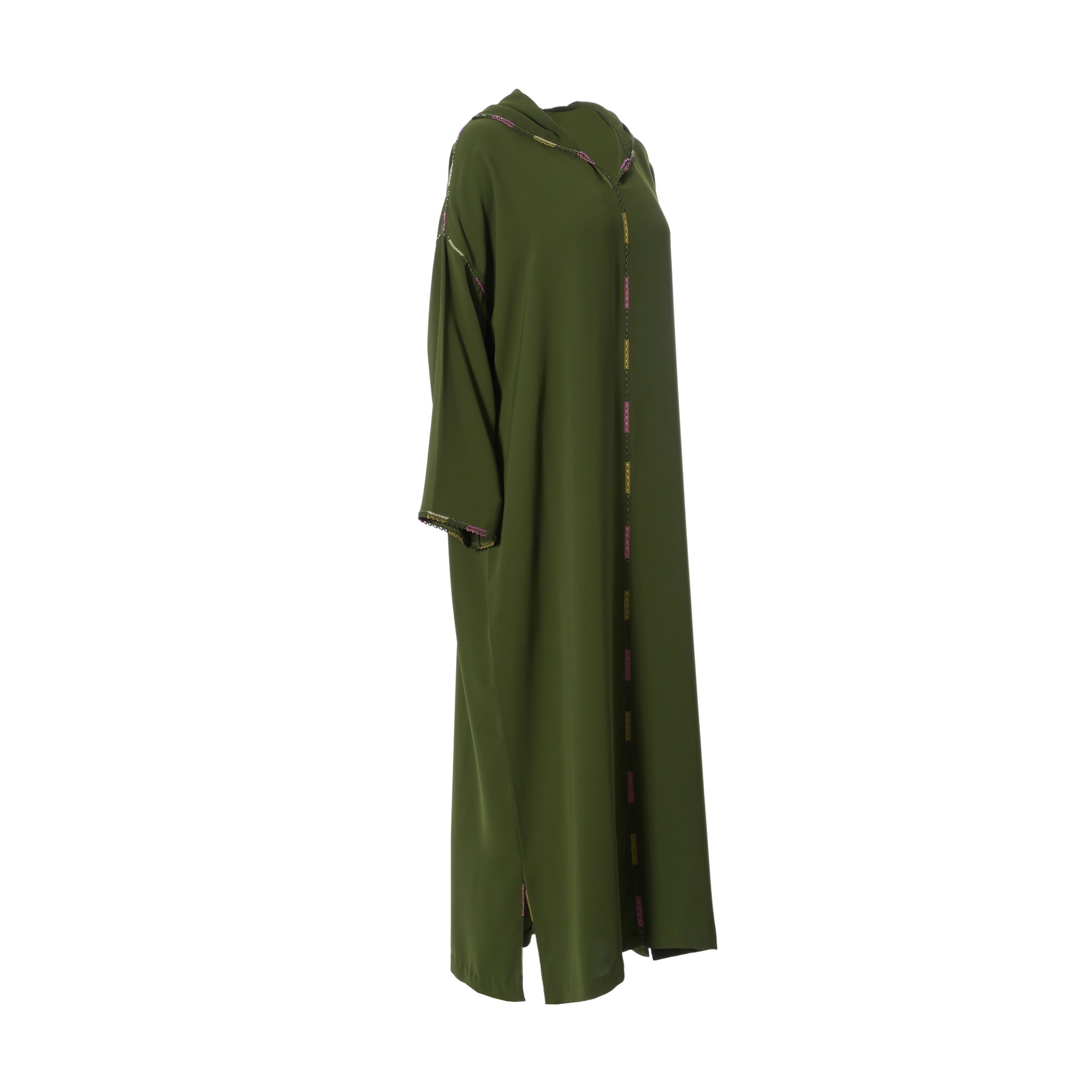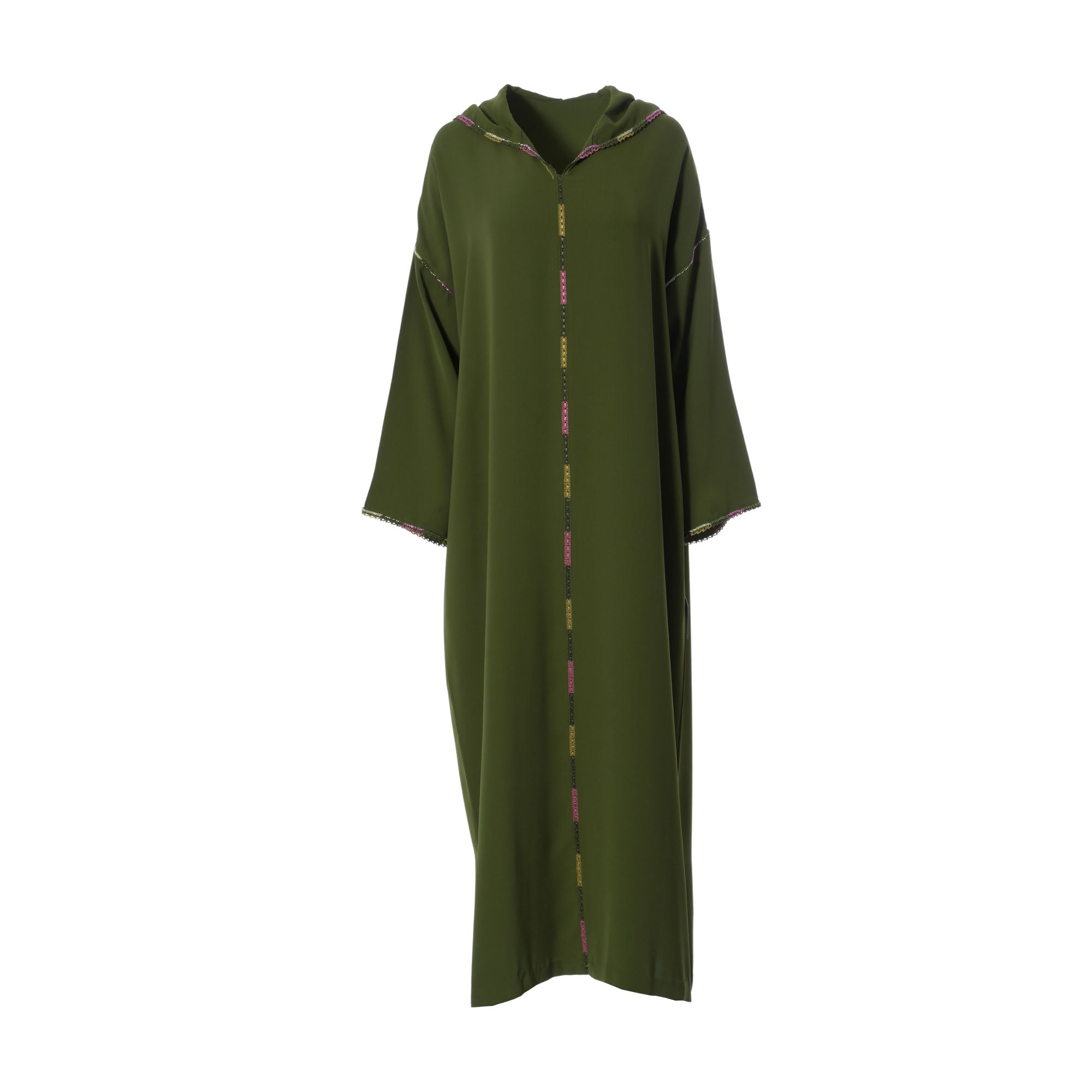 | The Laylati Women's Dark Green Jalabiya is a beautiful and stylish addition to your wardrobe. This classic garment is made from a premium quality fabric and features a loose, long-sleeved design. The front and sleeves of the Jalabiya is adorned with intricate embroiderd lace and slits on the sides of bottom and a long length for added coverage. The unique Dark Green hue will add a touch of elegance to any ensemble. This free size Jalabiya is a versatile and comfortable piece that can be dressed up or down depending on the occasion. Whether you're attending a special event or just want to look your best, the Laylati Women's Dark Green Jalabiya is the perfect choice. SPECIFICATIONS: