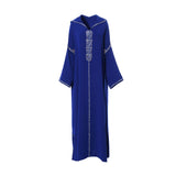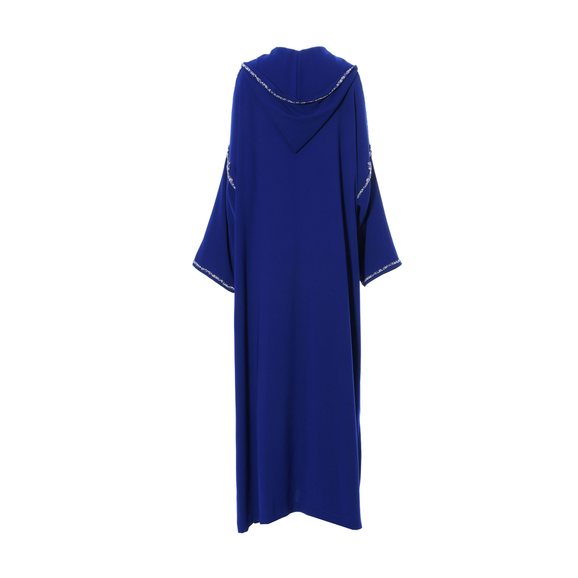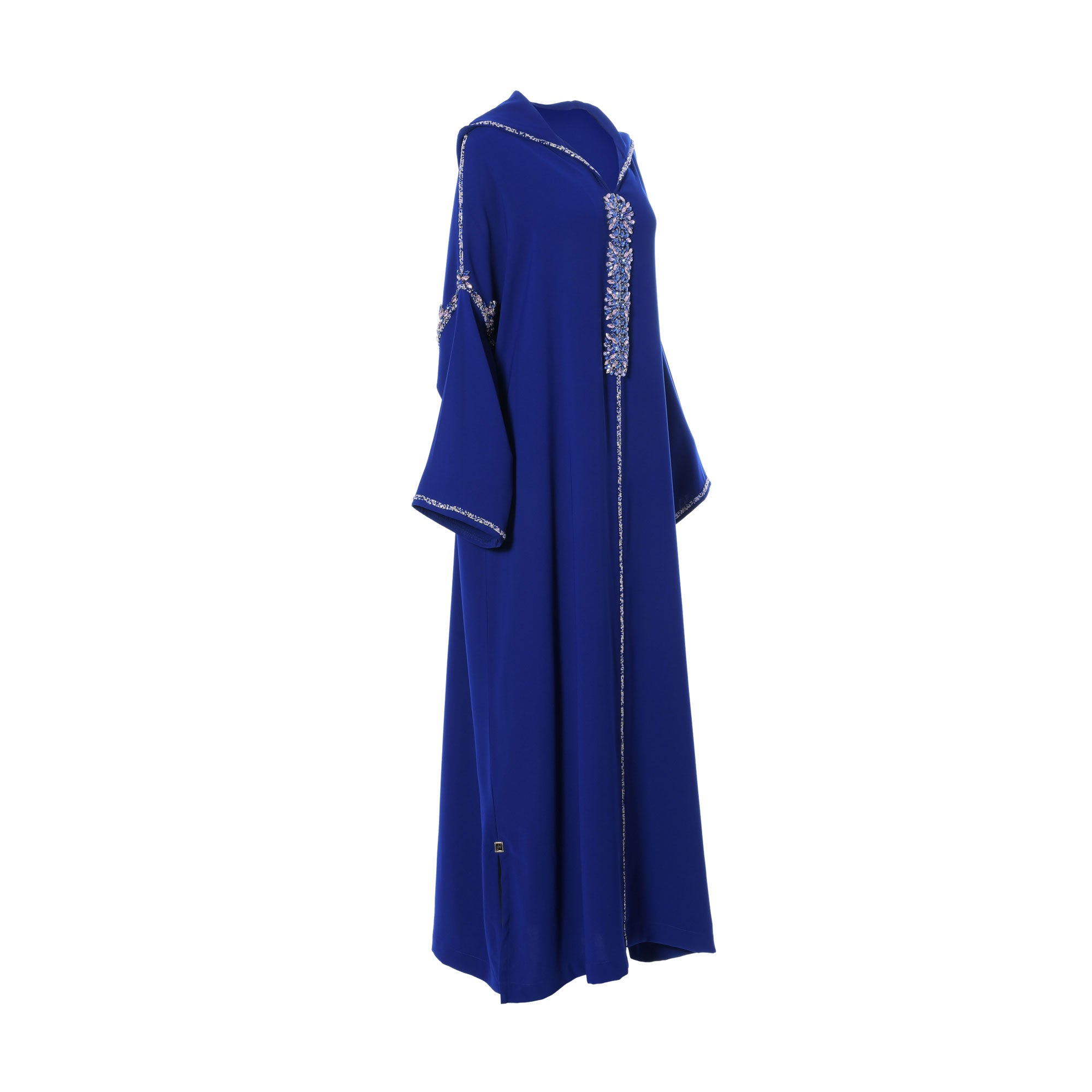 The Laylati Women's Blue Jalabiya is a stunning and stylish traditional garment, perfect for special occasions. The free size design features long, loose sleeves and is crafted from a fine fabric that drapes beautifully. It is cut to a long length, Side slits on both sides, allowing for a loose fit and features contrast hand stone embroidery to the front and sleeves, as well as a contrast pipeline trim. With its delicate details and luxurious fabric, this jalabiya is sure to make you look stunning. Whether you're attending a special event or simply looking to add a touch of elegance to your everyday wardrobe, the Laylati Women's Blue Jalabiya is a must-have. SPECIFICATIONS: