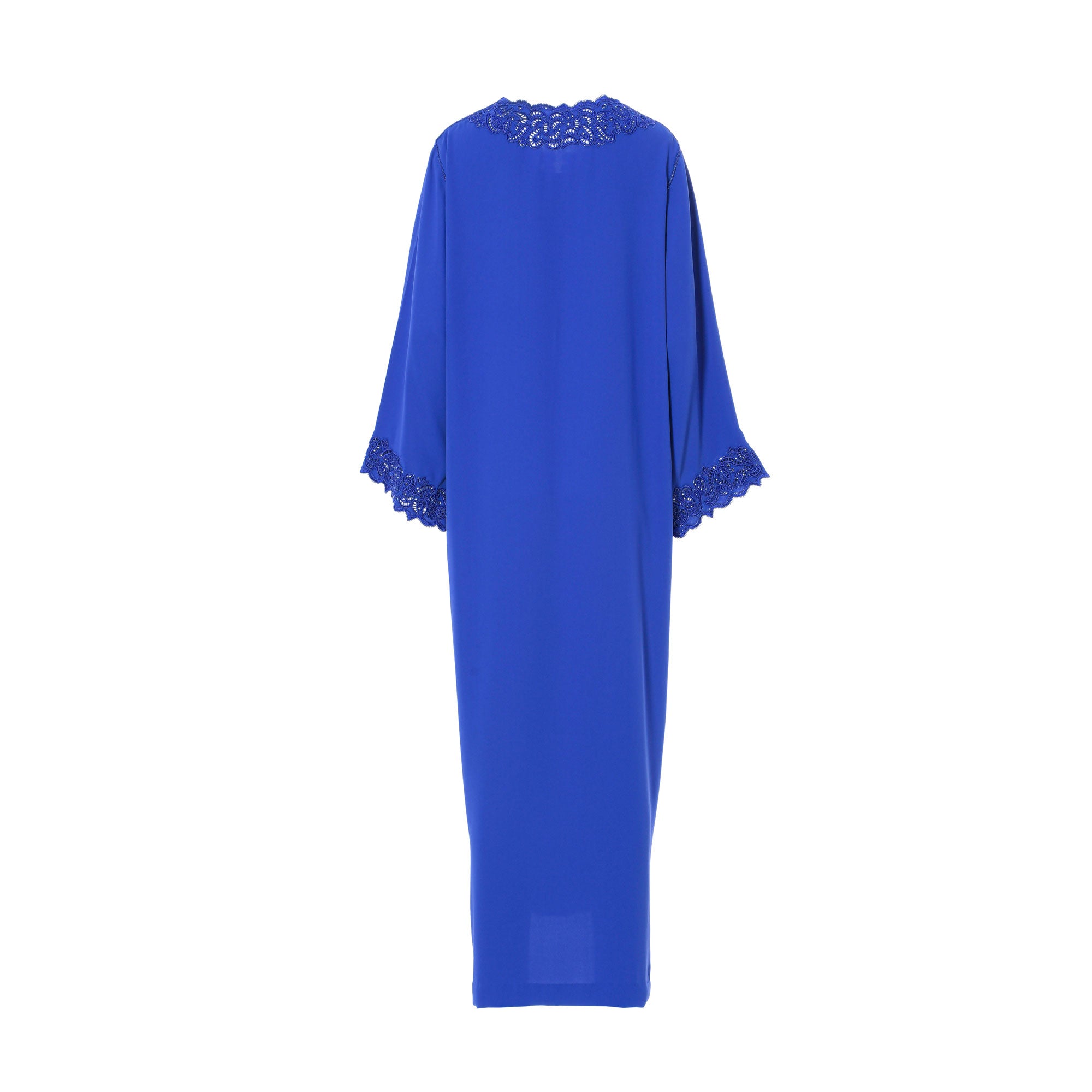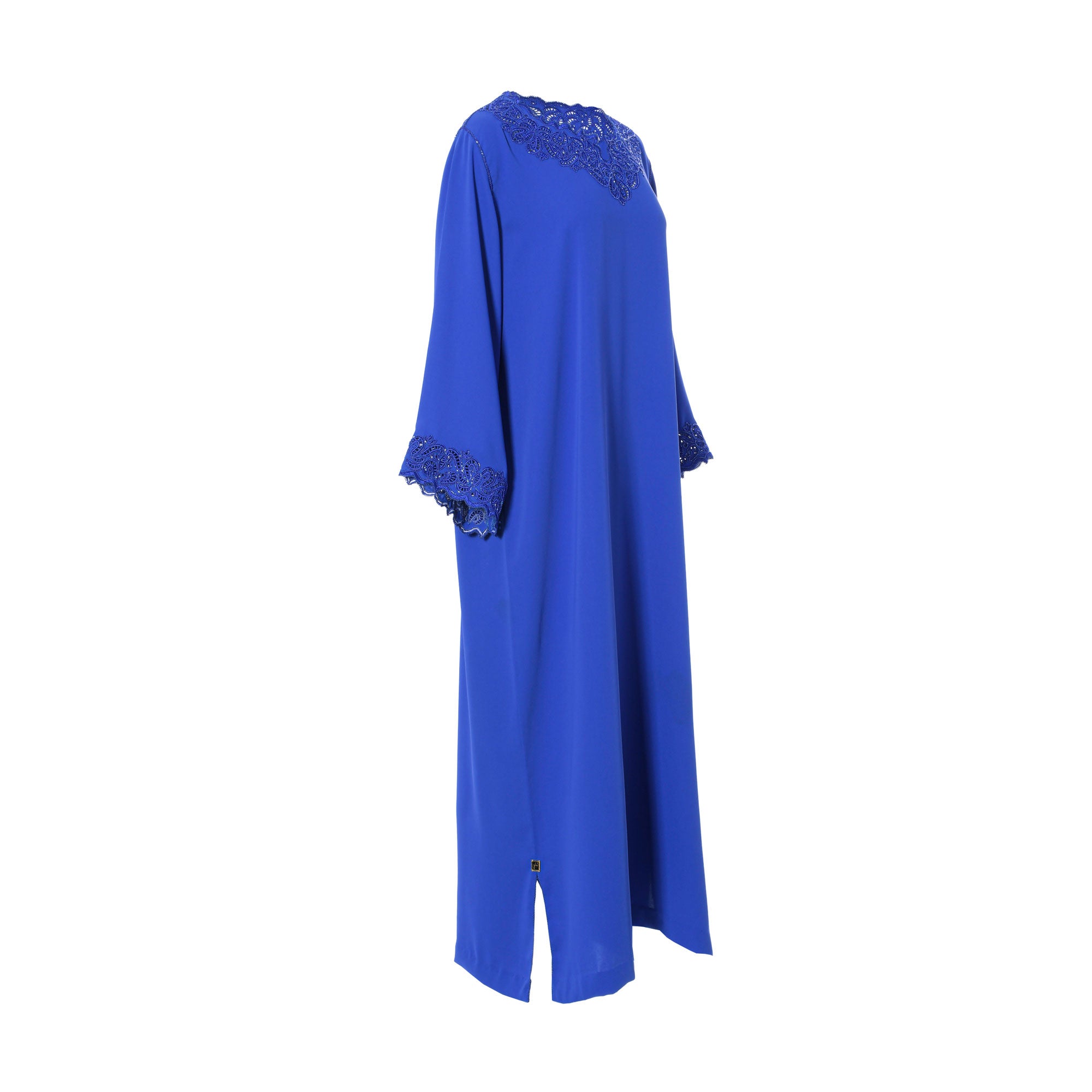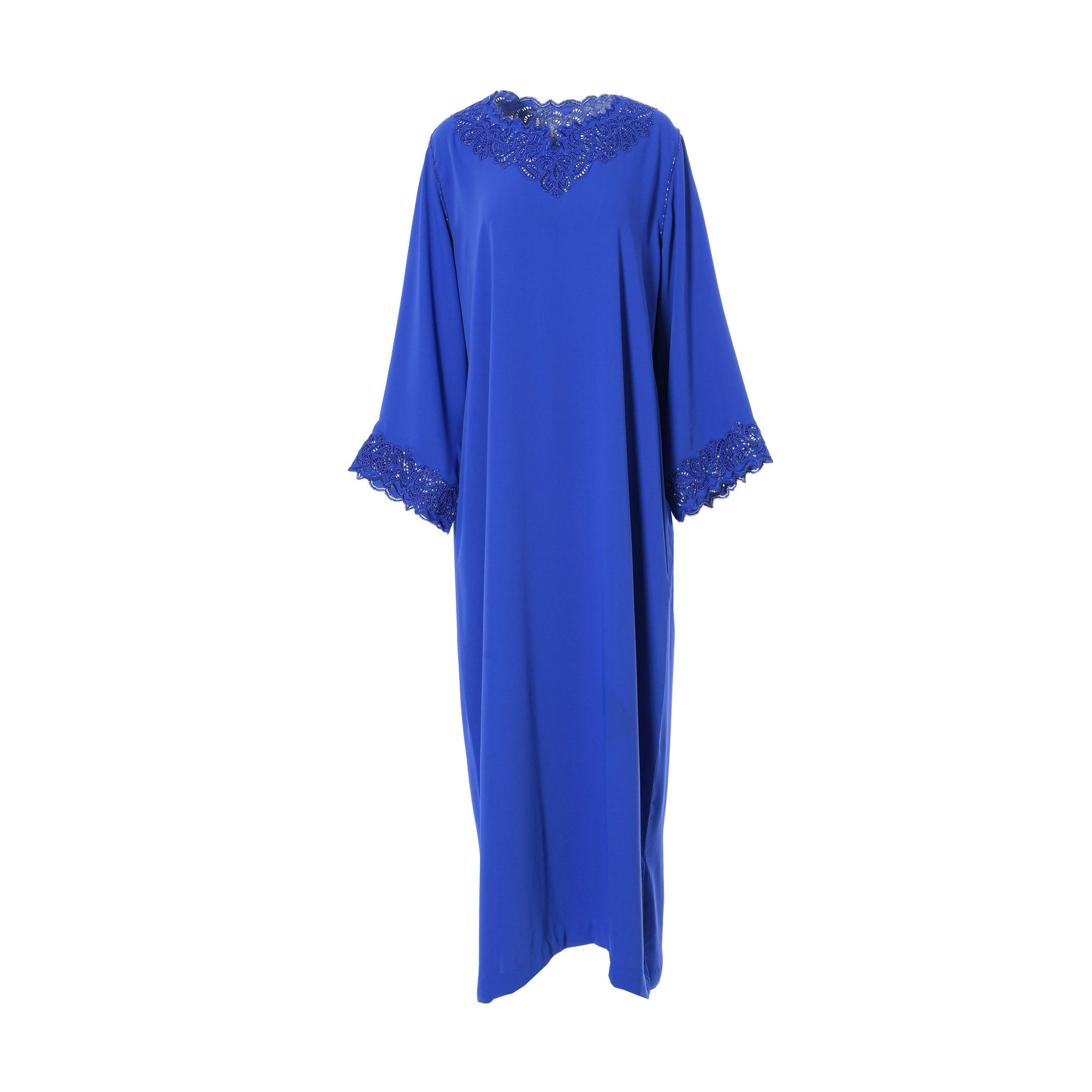 The Laylati Women's Blue Jalabiya is a stunning and stylish traditional garment, perfect for special occasions. The free size design features long, loose sleeves and v neck is crafted from a fine fabric that drapes beautifully. It is cut to a long length and features matching embroidery to the neck and sleeves, as well as a matching pipeline trim. With its delicate details and luxurious fabric, this jalabiya is sure to make you look stunning. Whether you're attending a special event or simply looking to add a touch of elegance to your everyday wardrobe, the Laylati Women's Blue Jalabiya is a must-have.